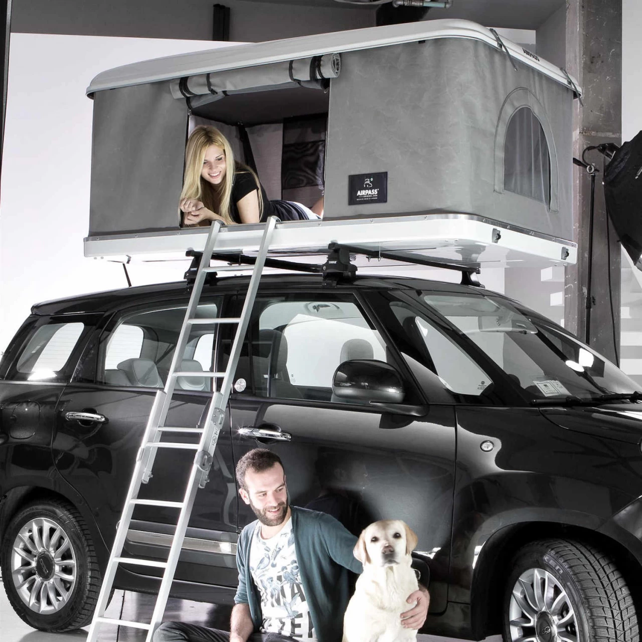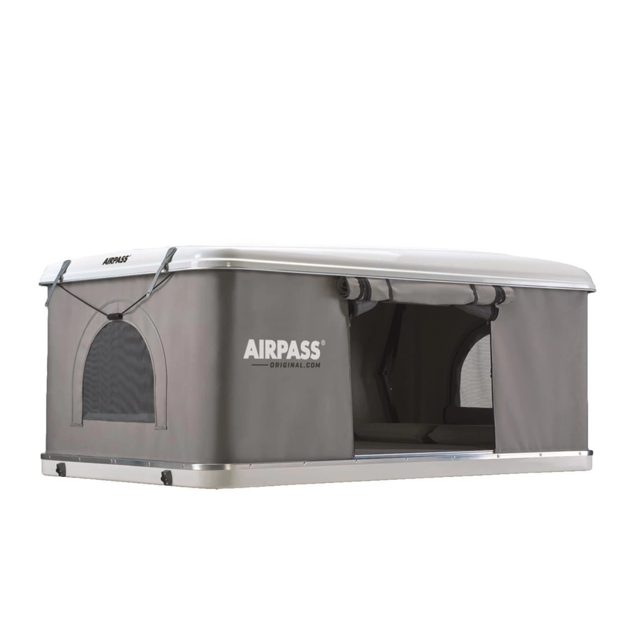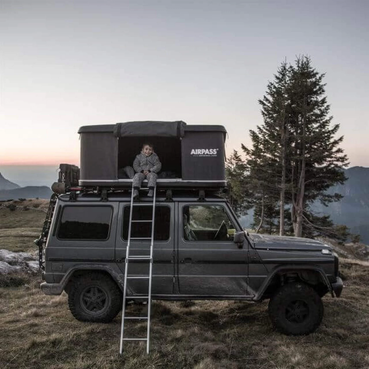 Das AirPass Small Dachzelt bietet Dir auf Deinem Roadtrip einen wunderbaren Schlafplatz. Es schafft einiges an Raum für zwei Personen. Bei geschlossener Dachschale beträgt die Höhe des Dachzeltes gerade einmal 25 cm und in geöffnetem Zustand 98 cm. Durch die hochwertige Verarbeitung und das leichte, elegante Design eignet es sich sowohl für Kleinwagen als auch für SUV, Liefer- und Geländewagen. Das Aussenmaterial besteht aus Polyester mit Acrylbeschichtung, welches sehr wärmeisolierend und, im Notfall, leicht zu reparieren ist. Ausserdem bildet es keine unschönen Knitterfalten. Das atmungsaktive Material und der kondensabweisende Innenhimmel sorgen für ein überragendes Raumklima. Das Öffnen des AirPass Small Dachzeltes erfolgt durch einen automatischen Mechanismus – hierzu musst Du einfach die vier Verschlüsse öffnen und es entfaltet sich mit Hilfe der eingebauten Gasdruckfedern innerhalb weniger Sekunden. In den integrierten, abnehmbaren Taschen finden Deine liebsten Gegenstände ihren Platz. Zur Ausstattung gehört ausserdem die Befestigung am Dachträger, zwei Türen sowie zwei Fenster mit integrierten Moskitonetzen und einer teleskopierbaren (ca. 120 – 210 cm) Aluleiter. Das AirPass Small Dachzelt ist ideal für ein Abenteuer oder ein ruhiges Wochenende mit Deinem Partner.