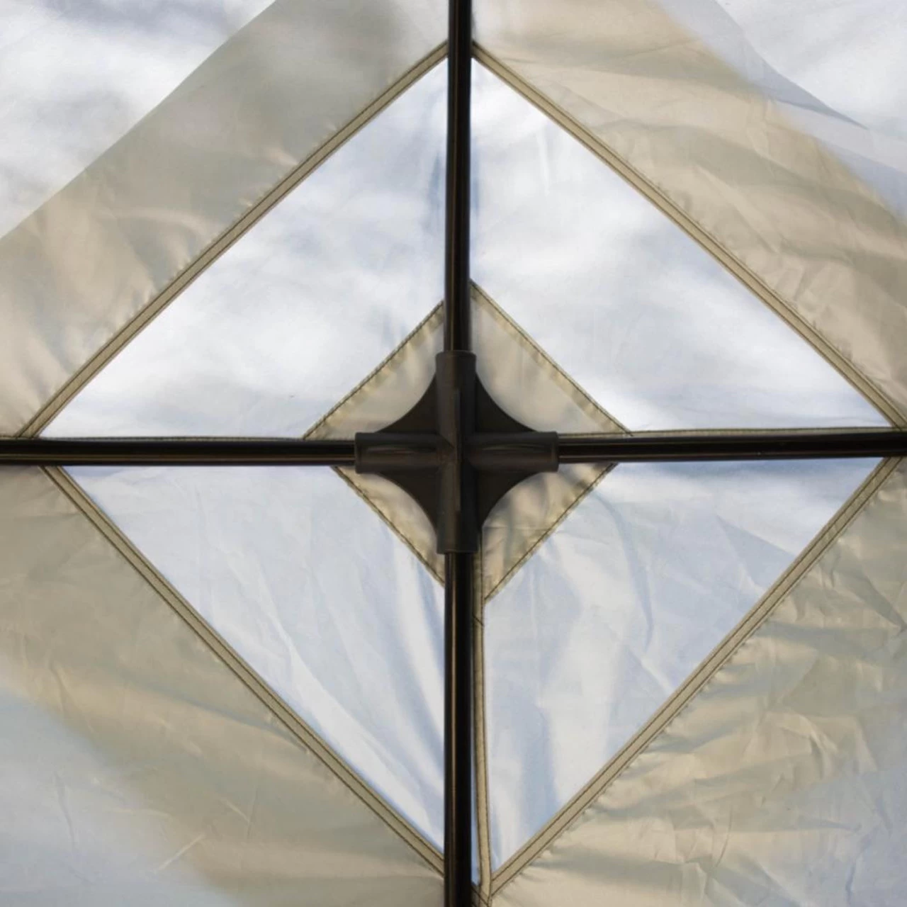 DerColeman FastPitch Shelter XL ist ein Pavillon, der sich in sehr kurzer Zeit aufbauen lässt. Der besondere Clou des FastPich Shelters sind die höhenverstellbaren Beine. Sie sind wie der Rest des Gestells aus Stahl und können im Handumdrehen abgesenkt oder hochgezogen werden. Mit einem einfachen „Klick“ rasten die Beine auf einer der vormontierten Höhen ein. Mit einer Aufbaufläche von 4,5 x 4,5 m ist der Coleman FastPitch Shelter XL ein kompakter Pavillon, der jedoch genügend Gästen auf deiner Gartenparty oder auf dem Campingplatz einen trockenen, schattigen Platz bietet. Die UV Guard Beschichtung sorgt für einen UV50+ Sonnenschutz. Aber auch vor Regen sind du und deine Gäste Dank der 1.000 mm Wassersäule geschützt. Der Coleman FastPitch Shelter XL ist ein freistehender Pavillon. Es empfiehlt sich jedoch, den Pavillon immer abzuspannen.