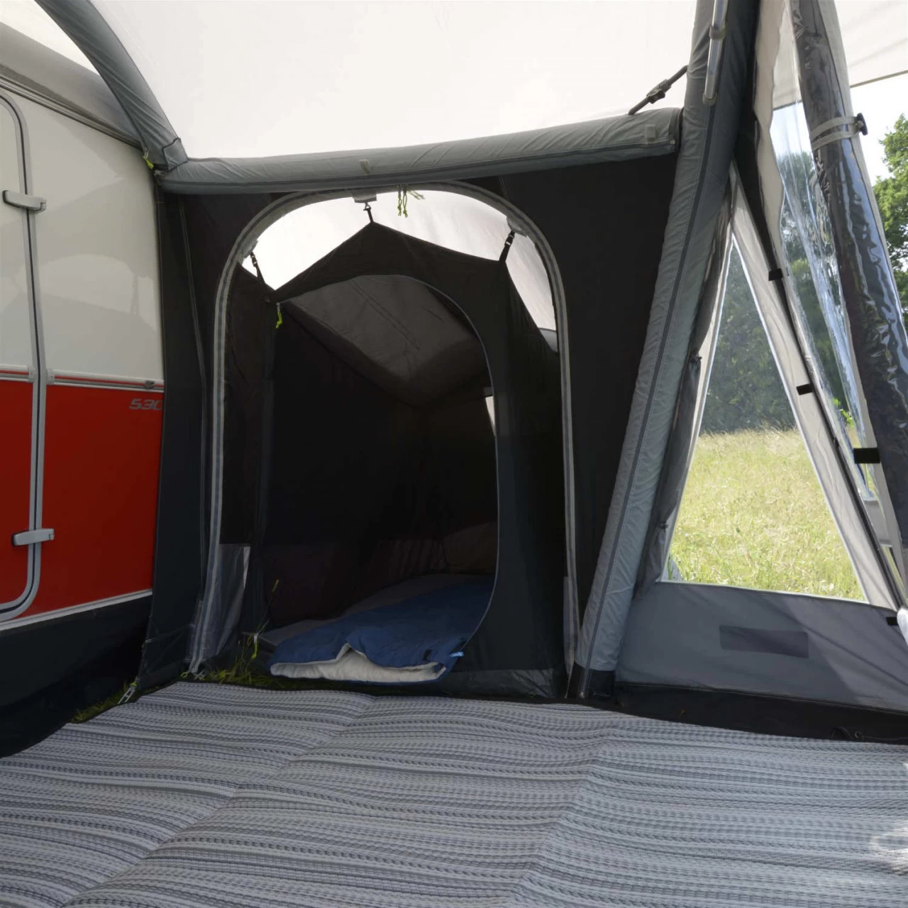 Der Dometic Pop AIR Pro Annexe 290/340/365 Anbau schafft zusätzlichen Schlaf-, oder Stauplatz und wird ganz einfach an Deinem Dometic Pop AIR Pro 290/340/365 Vorzelt angebracht. Der Aufbau geht auch hier dank der Luftschläuche schnell und einfach. Es besitzt einen Fliegengitter-Netzwand-Einsatz, sodass du bei offener Tür lüften kannst, ohne das Insekten ins Innere des Anbaus kommen. Ein Innenzelt ist bei der Lieferung inklusive.