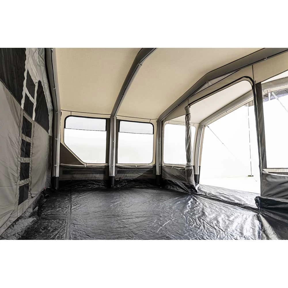 Im großen, überdachten Nassbereich des Dometic Rarotonga FTT 401 Familienzeltes findet ihr einen gemütlichen Platz zum Verweilen, Spiele spielen und Essen.