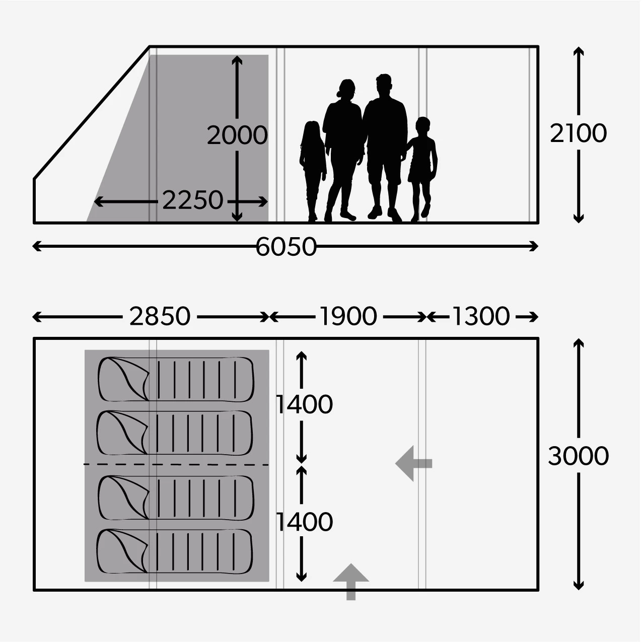 In deinem Dometic Rarotonga FTT 401 Familienzelt wirst du einen schönen Urlaub mit deiner Familie verbringen. Große Fenster sorgen für hervorragenden Lichteinfall. In den beiden abgedunkelten Schlafkabinen finden bis zu vier Personen einen gemütlichen Schlafplatz. Der Bereich hinter den Schlafkabinen kann gut als Stauraum genutzt werden. Hinter den Seitentüren, die sich links und rechts vor den Schlafkabinen befinden, sind Moskitonetzte integriert.