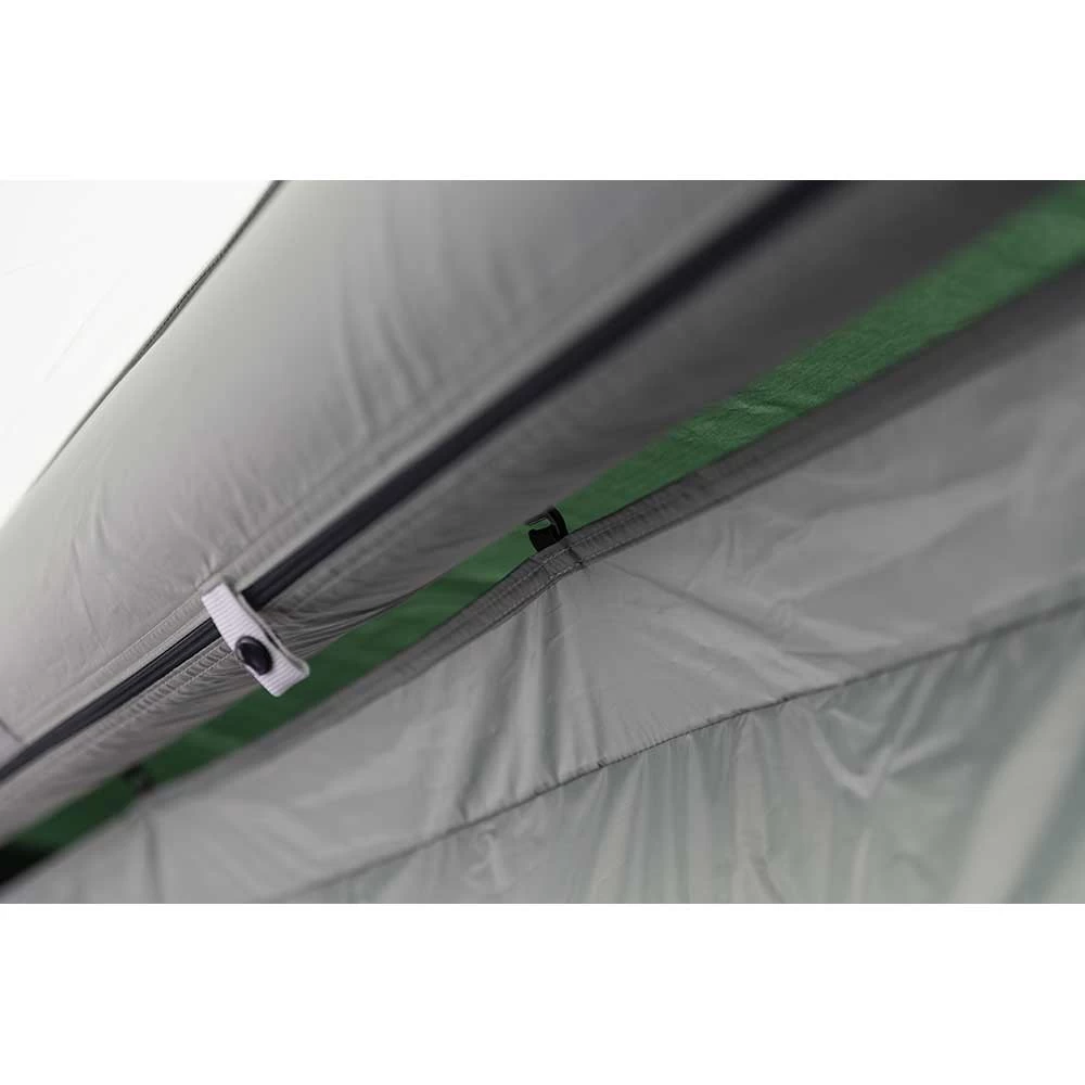 Das Dometic Rarotonga FTT 601 Familienzelt wird dich bei all deinen Abenteuern mit deiner Familie zuverlässig begleiten. Große Fenster sorgen für hervorragenden Lichteinfall. In den beiden abgedunkelten Schlafkabinen finden bis zu sechs Personen einen gemütlichen Schlafplatz. Der Bereich hinter den Schlafkabinen kann gut als Stauraum genutzt werden. Hinter den Seitentüren, die sich links und rechts vor den Schlafkabinen befinden, sind Moskitonetzte integriert.