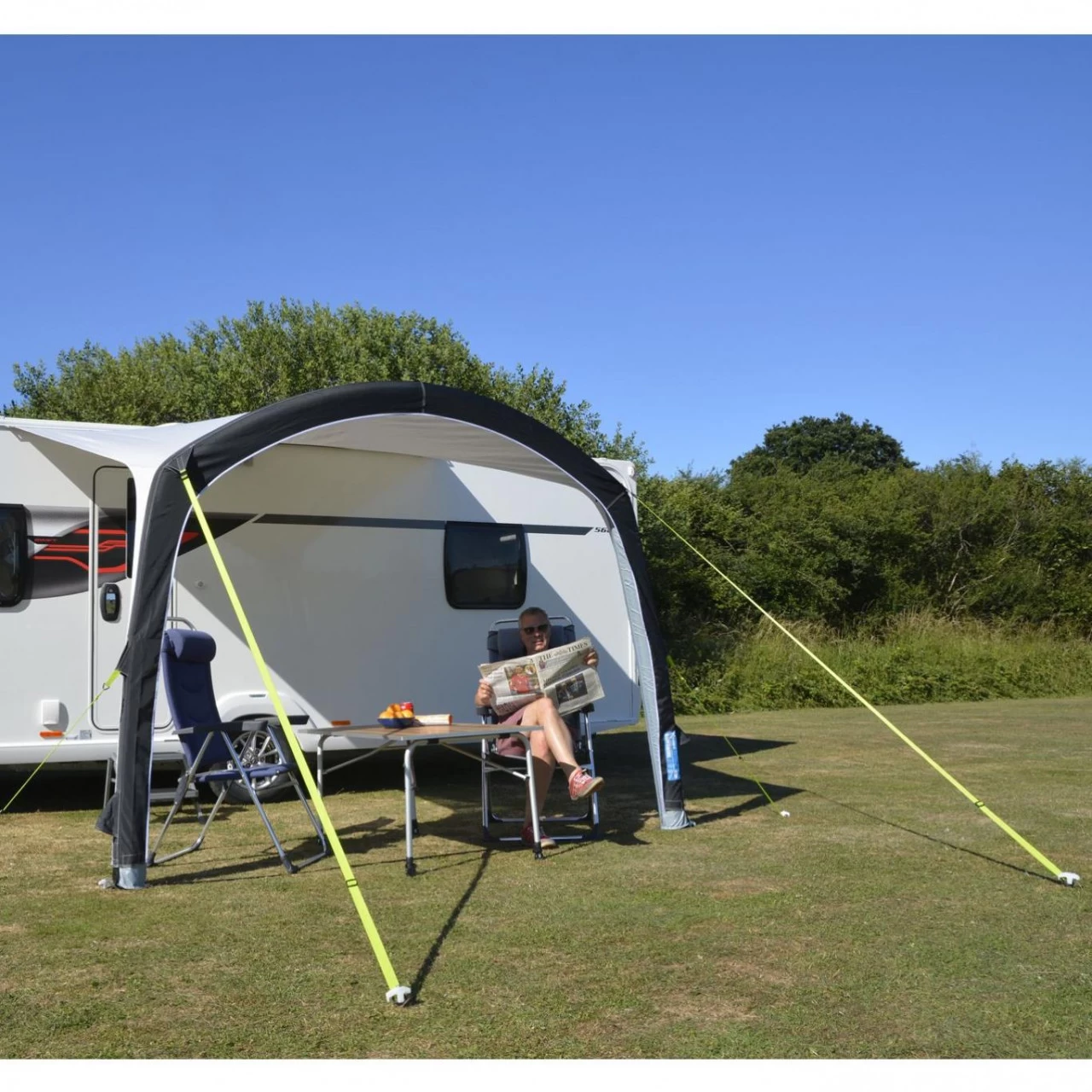 Das Dometic Sunshine AIR Pro 300 Sonnensegel ist der ideale Begleiter für deinen Wohnwagen. Dank der Luftsäulen ist das Sonnensegel in wenigen Sekunden aufgebaut. Durch die optionalen Seitenwände kannst du mehr Privatsphäre genießen und bist gleichzeitig vor Wind geschützt. Sollte mal ein starker Sturm die Verankerung aus dem Boden reißen, dann kann bei dem Sunshine AIR Pro 300 Sonnensegel so gut wie nichts passieren – die Luftschläuche beschädigen das Fahrzeug nicht.
