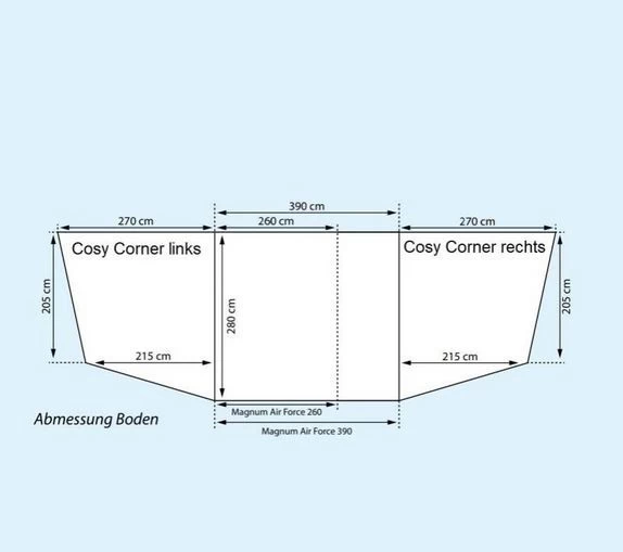 Passend zu Deinem Doréma Magnum Air Force All-Season Luftvorzelt bietet Dir der Cosy Corner All-Season Links weitere Schlafplätze oder einen Aufenthaltsraum. In Kombination mit dem Cosy Corner All-Season Rechts erweiterst Du Dein Luftvorzelt und schaffst zusätzlich Platz zum Schlafen und Aufbewahren Deines Equipments.