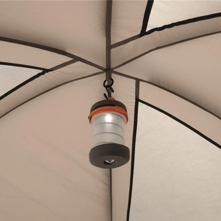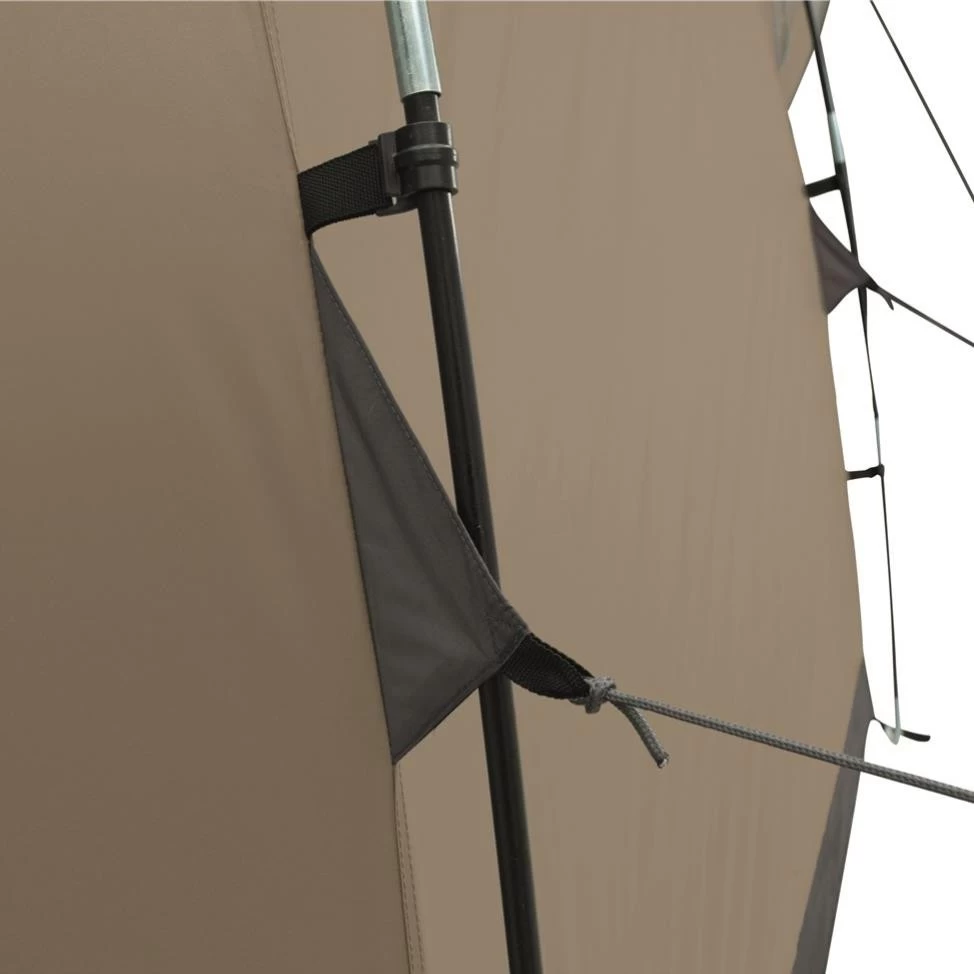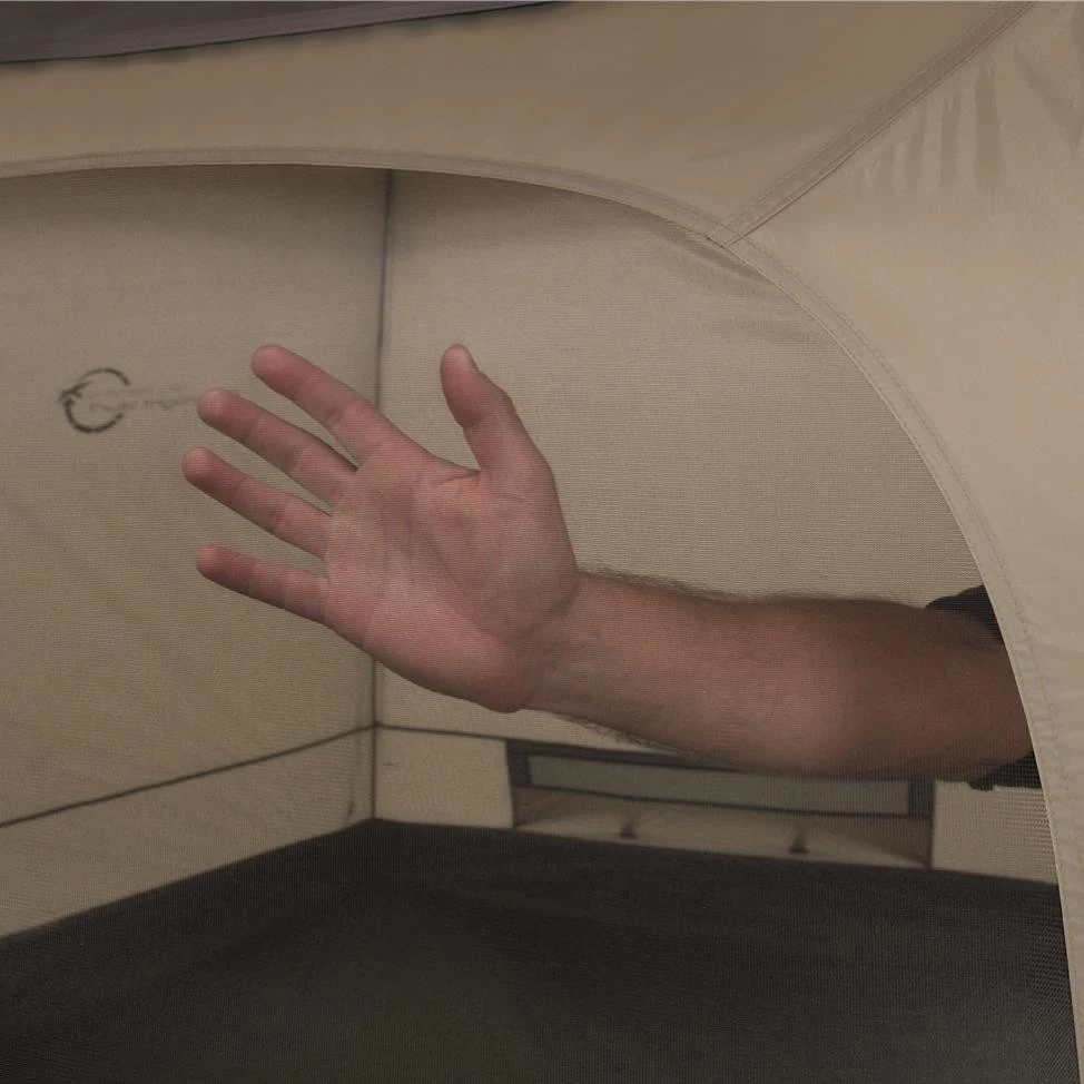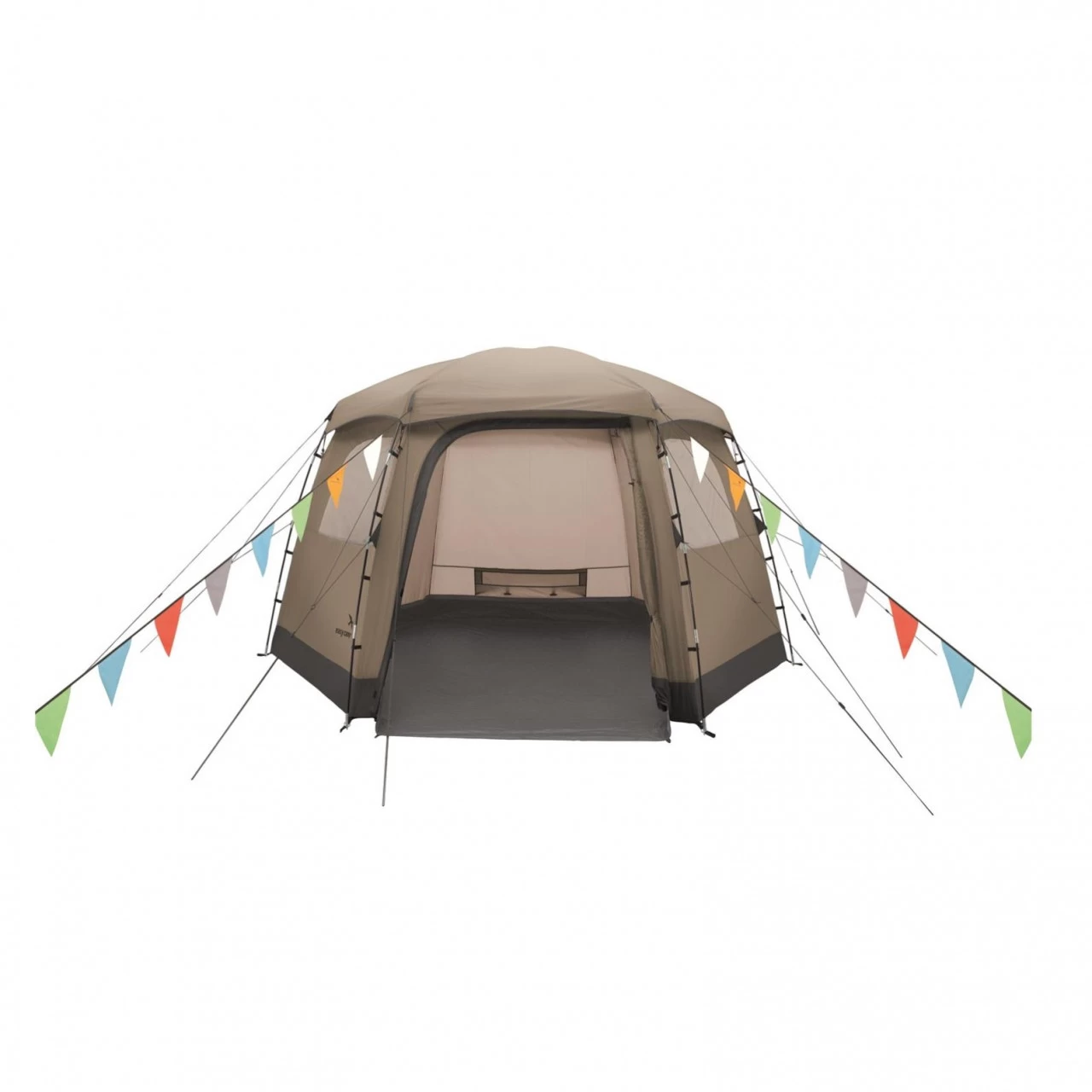 Das easy camp Moonlight Yurt Gruppenzelt ist für bis zu sechs Personen der ideale Begleiter. In das Innere des Zeltes gelangst Du durch den großen Fronteingang, der je nach Bedarf mit seinem Zwei-Wege-Reißverschluss geöffnet oder geschlossen werden kann. Im Inneren hast Du durch die vorgebogenen Stangen volle Stehhöhe und Kopffreiheit. Durch die großen Fenster kommt genügend Licht in das Zelt und macht es wohnlicher. Die Fenster sind mit Vorhängen ausgestattet, die Dich vor neugierigen Blicken schützen, können aber bei Bedarf aufgerollt werden, sodass Du den Blick nach Draußen genießen kannst. Außerdem verfügt das Gruppenzelt über sechs große Organizer-Taschen, in denen Du persönliche Gegestände einfach verstauen kannst. Zusätzlich sorgt das Moonlight Yurt durch seine mit Netzeinsatz versehenen Türen und Fenster für eine gute Belüftung im Zelt. Die Lüftungsöffnungen an der Rückseite des Zeltes können abgedeckt werden.