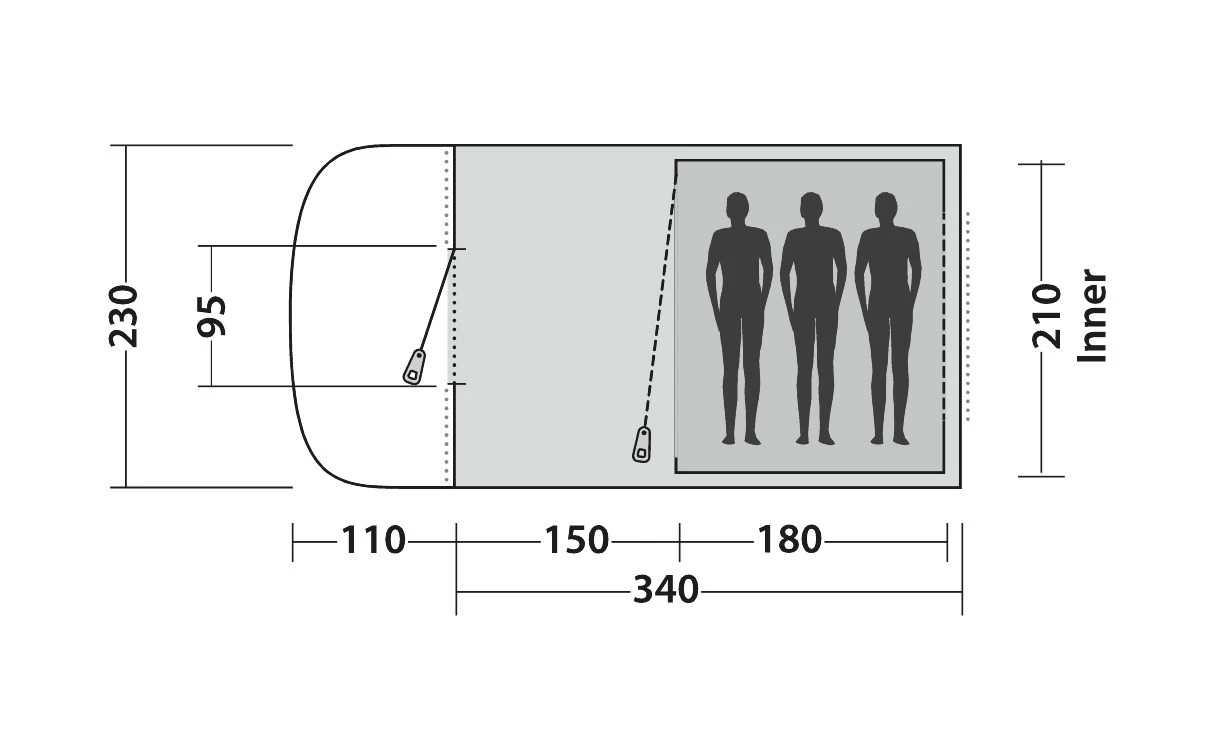 Das Palmdale 300 Familienzelt aus der TOUR Modellreihe ist das kleinste Tunnelzelt der Reihe mit Platz für bis zu 3 Personen. Es eignet sich herrvoragend für kleine Familien oder Paare die ein vielseitiges Zelt suchen, aber während ihres Urlaubes nichts missen möchten. Das vorgeformte Fiberglasgestänge des Palmdale 300 Familienzeltes bietet mehr Kopffreiheit und der eingenähte Zeltboden schützt Dich vor kalter Zugluft oder lästigen Insekten. Durch das abgedunkelte Material werden die großzügigen Schlafkabinen abends früher dunkel und morgens später hell. Somit habt ihr lange, entspannte Nächte. Das große Vorzelt schützt einerseits die Belüftungsöffnungen vor Regen, andererseits bietet es genügend Stauraum und Schutz. Die großen Fenster durchfluten den Innenraum mit Licht und sorgen für eine weitere Belüftungsmöglichkeit.