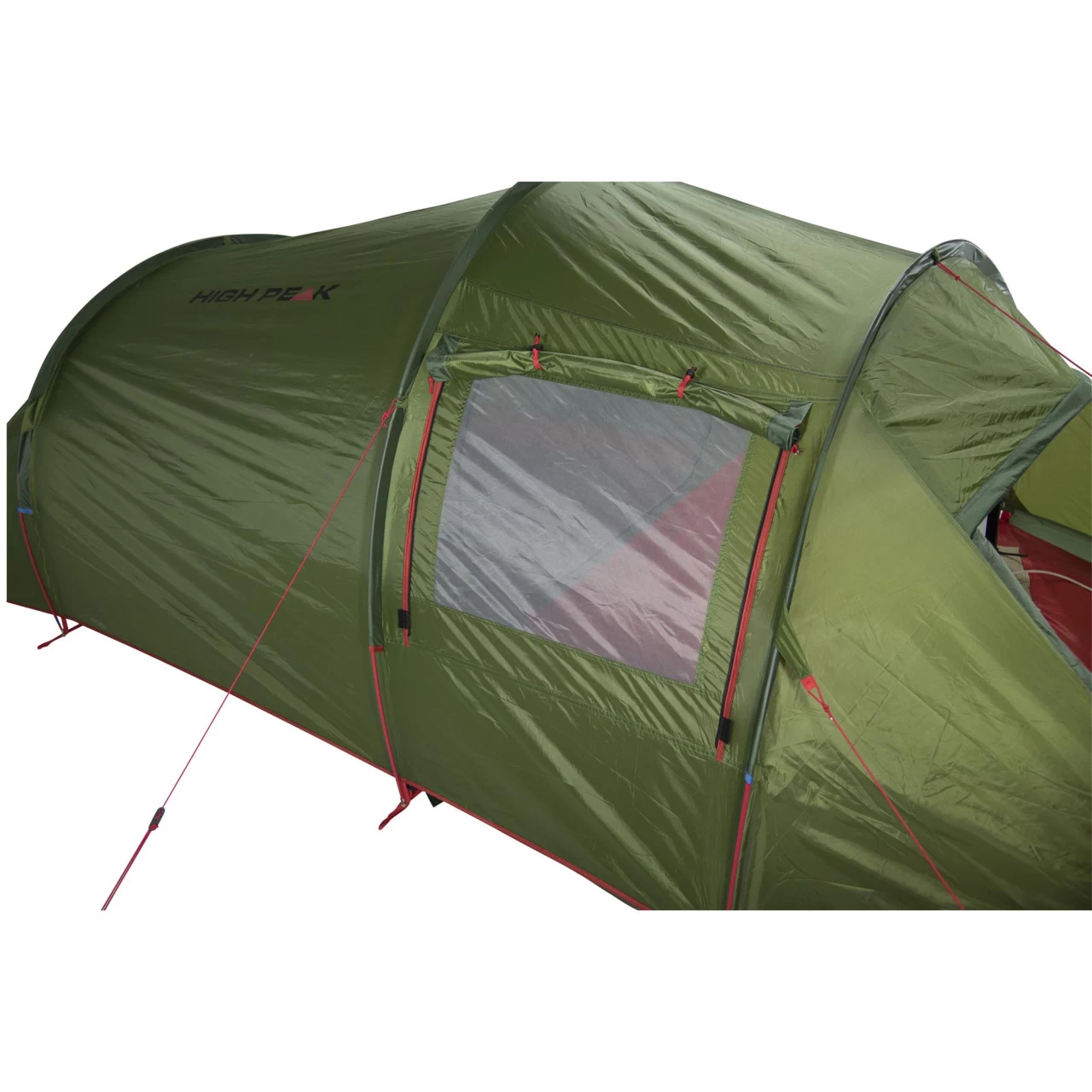 Mit dem High Peak Falcon 3 kannst du dich mit 2 Begleitern auf eine Tour begeben oder auch einen Kurzurlaub auf einem Campingplatz erleben. Der XL-Vorbau bietet Stauraum für die Ausrüstung und kann gleichzeitig auch als Wohnraum bei schlechtem Wetter genutzt werden. Am Innenzelt ist der Zeltboden festgenäht, der bei Bedarf im Vorbau ausgerollt und eingehängt werden kann. So ist die Ausrüstung vor Feuchtigkeit geschützt. Es gibt einen Front- und einen Seiteneingang zum Zelt. Dadurch seid ihr flexibel in der Nutzung des Zeltes und auch bei der Belüftung bieten sich so mehr Möglichkeiten. Im Vorbau befindet sich zudem ein Moskitonetz-Fenster, was von innen mit einem Vorhang geschlossen werden kann.