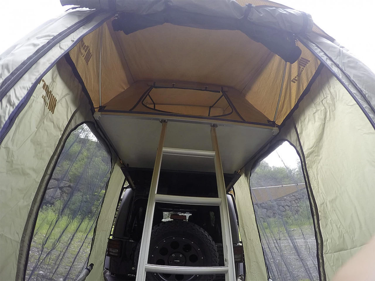 Das horntools GmbH Dachzelt Desert I 140 cm eignet sich perfekt für zwei Personen, die bei ihrem Abendteuerurlaub auf nichts verzichten möchten. Es passt für fast alle Fahrzeuge, vom kleinen VW Polo bis zum Land Rover Defender. Durch das hochwertige Segeltuchgewebe (Baumwollmischgewebe) ist das Dachzelt besonders atmungsaktiv und ein Überdacht aus Polyester sorgt für einen Schutz vor Regen. In das Innere des Zeltes gelangst du durch den Einstieg von unten, sodass du vor Wind und Wetter bestens geschützt bist. Das Zelt verfügt über drei Fenster, die seitlich geschlossen werden können. Darüber hinaus sind sie mit Moskitonetzen ausgestattet, sodass du einen ruhigen und angenehmen Schlaf hast. Des Weiteren verfügt das Dachzelt Desert I 140 cm über einen robusten, wasserdichten Gummi-Innenboden, den du bei Bedarf auch herausnehmen kannst. Das Vorzelt ist mit einem YKK Reißverschluss in 3 Minuten am Dachzelt befestigt. Im Lieferumfang enthalten sind: Dachzelt + Abdeckung, Regenüberzug, Vorzelt + Innenboden, 80 mm Matratze, Dachträger-Befestigungsmaterial, Werkzeug für den Aufbau, Spannstangen für die Ausstellfenster, Abspannschnüre und Karabiner, Bedienungs- und Pflegeanleitung!