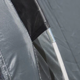 Das Kampa Croyde 6 Familienzelt bietet Dir und Deiner Familie bei sonnigen und auch regnerischen Tagen viel Platz für ein gemütliches Zusammensitzen mit bis zu 6 Personen. Wie jedes der Kampa Gestänge Zelte steht auch das Croyde 6 bei Wind und Wetter sehr gut dar und hat dank des Kunstfasergewebes eine sehr schnelle Trocknungszeit. Die bodentiefen Fenster sorgen dafür, dass der Innenraum immer gut beleuchtet ist. Der Seiteneingang ist überdacht und man kann auch bei schlechtem Wetter sauber und trocken in das Zelt gelangen.