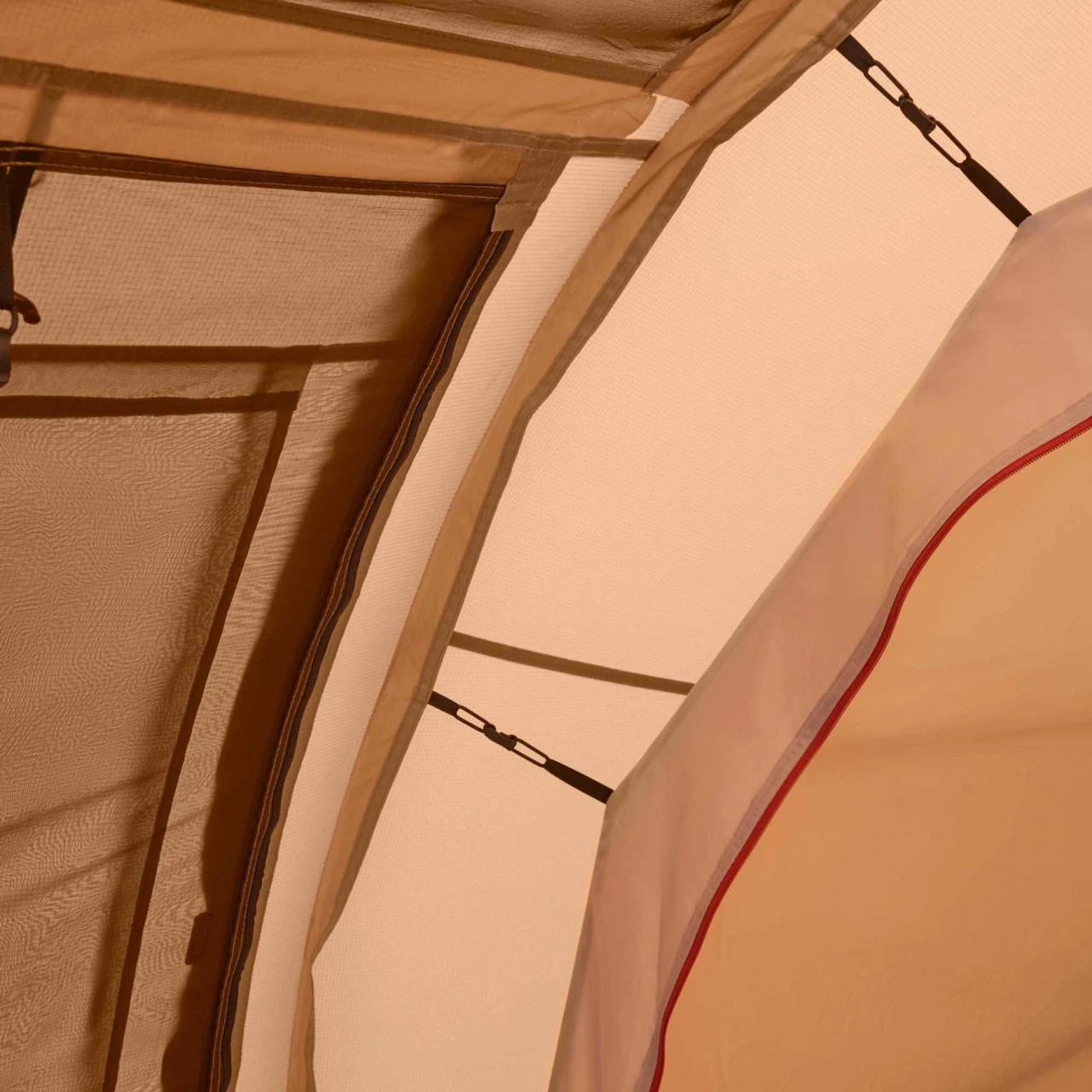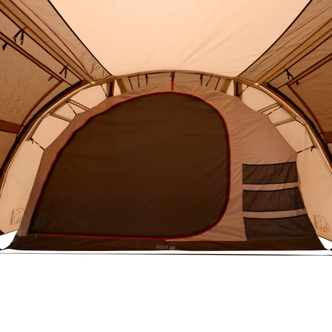 Das Nordisk Reisa 4 PU Familienzelt eignet sich hervorragend für einen Familienurlaub zu viert. In das Innere des Zeltes gelangst Du durch eine der beiden Türen. Die Türen können komplett geöffnet und als Sonnendach aufgestellt werden. Außerdem bestehen die Türen aus zwei Schichten mit No-See-Um-Netz und Fenstern mit integrierten Rollvorhängen. Somit ist Dein Zelt schön lichtdurchflutet und hat ein angenehmes Zeltklima. Bei Bedarf können die Fenster für mehr Privatsphäre verschlossen werden. Im Inneren des Zeltes befinden sich zwei Schlafkabinen, die mit eingenähten Bodenwannen versehen sind, sodass in Deiner Schlafumgebung ein angenehmes Klima herrscht. Die eine Schlafkabine kann bei Bedarf abgetrennt und als zusätzlicher Stauraum oder Apsis verwendet werden. Zu den weiteren Ausstattungsmerkmalen des Reisa 4 PU gehören unter anderem mehrere Aufbewahrungstaschen und Haken im Zelt, um dieses ein wenig wohnlicher zu machen, zusätzliches Gestänge, um das Sonnendach zu fixieren und Deckeltaschen für schnelles Verstauen der Windfangtüren. Platz für Dein Gepäck oder Deine Schuhe hält der hohe Zwischenraum bereit, der die beiden Schlafkabinen voneinander trennt. Kleinigkeiten oder besonders wichtige Ausrüstungsteile sind somit in Deiner Nähe!
