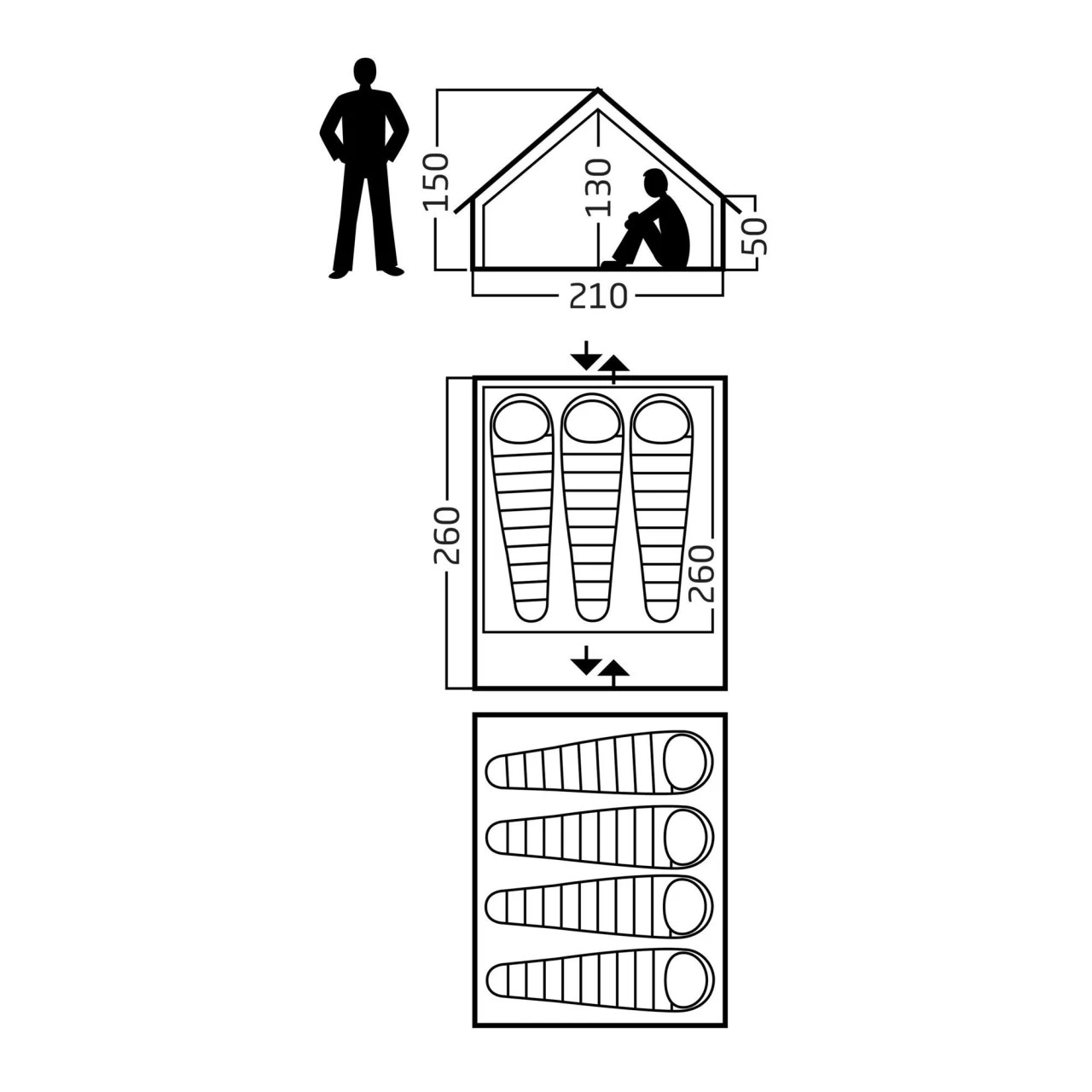 Der eingenähte Boden des Ydun 5.5 m² schützt vor Wasser und Schmutz, hält aber bei geschlossenen Türen auch Insekten fern. In dem Zelt ist Platz für bis zu 4 Personen, die entweder längs oder quer liegen können.