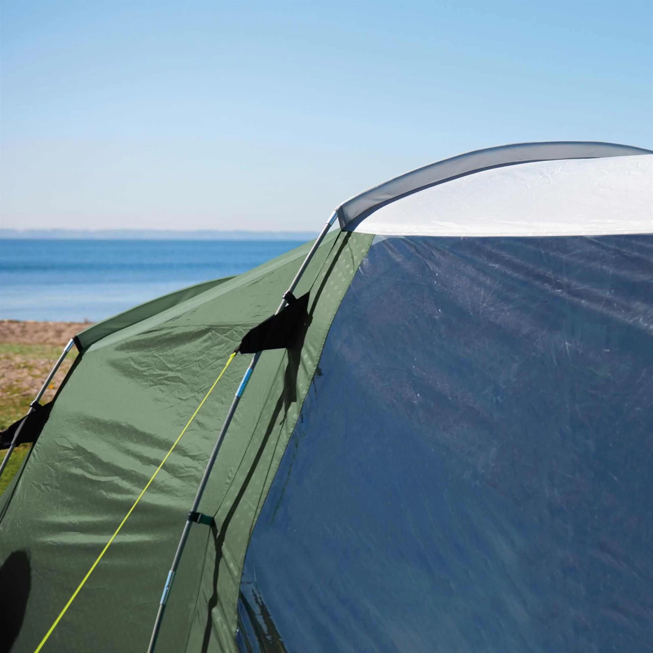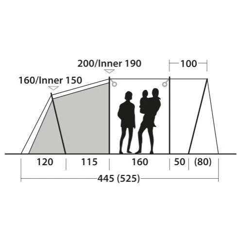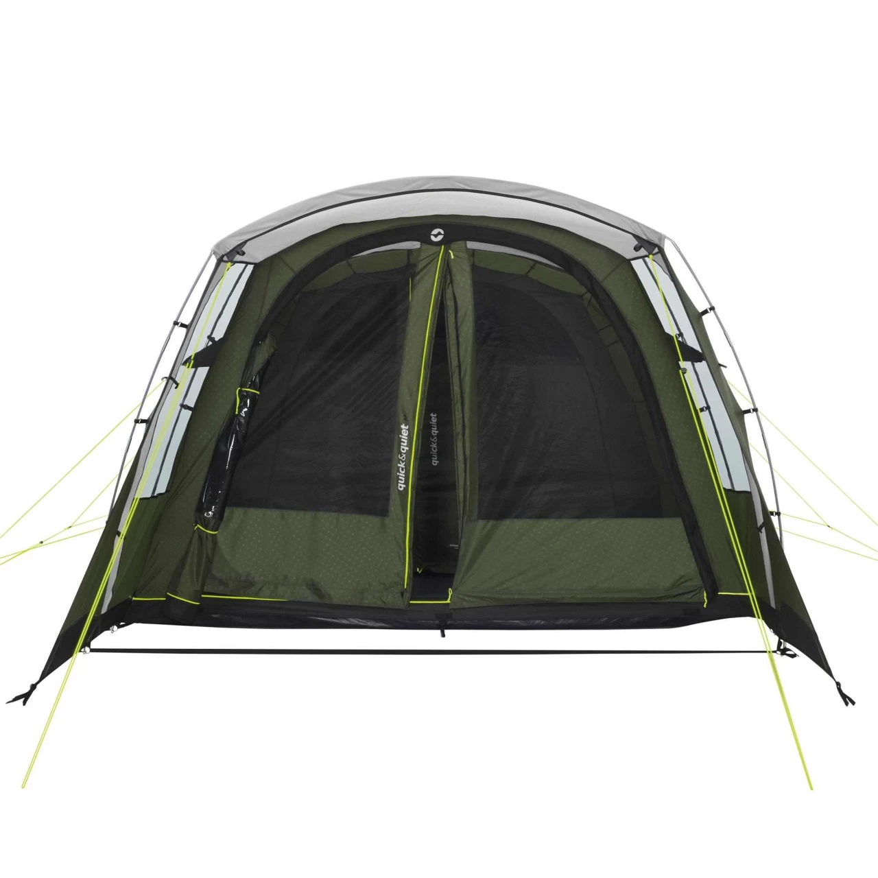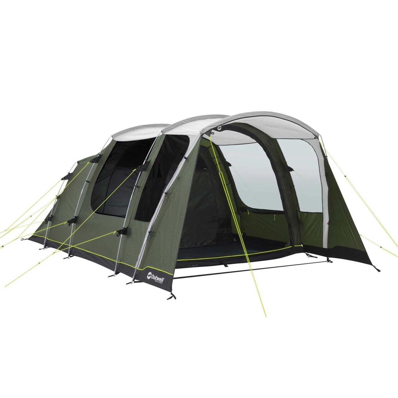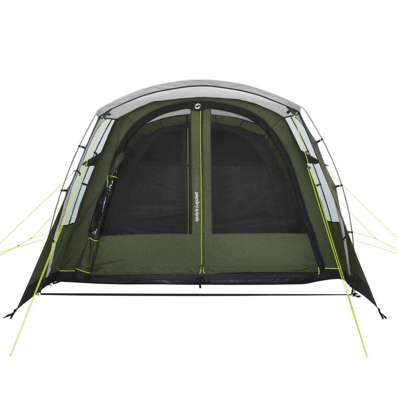 Das Outwell Ashwood 5 Familienzelt ist ideal für kleine Familien, die eine komfortable Homebase für gemeinsame Urlaubstage oder Ausflüge suchen. Mit dem ummantelten Duratec-Fiberglasgestänge, der vollen Stehhöhe, der optimalen, vielseitigen Belüftung sowie den 2 patentierten Quick & Quiet Magnettüren steht einem unbeschwerten Campingerlebnis nichts mehr im Weg. Hinter der Vorderwand mit Seitenfenster und großem Vordach gelangst du durch die neue, patentierte Quick & Quiet Mesh Tür mit Magnetverschluss in dein Zelt. Wenn du die Magnetfunktion nicht nutzen möchtest, kannst du die Front mit einem doppelten Reißverschluss komplett öffnen. Das eingearbeitete Moskitonetz ermöglicht eine Belüftung, ohne dass Insekten ins Zelt gelangen. Die abgedunkelte Premium Schlafkabine ist ebenfalls mit einer Quick & Quiet Tür versehen, so dass du die Kabine geräuschlos öffnen und verlassen kannst. Für eine optimale Belüftung der Schlafkabine des Ashwood 5 von Outwell sorgt das „Rear Ventilation System“. Eine spezielle, variable Belüftung an der Zeltrückseite. Die Netztaschen im Innenzelt dienen zur Aufbewahrung kleinerer Gegenstände, die du schnell zur Hand haben willst. Die großen getönten Fenster reduzieren das Blenden bei starker Sonneneinstrahlung. Um dir mehr Privatsphäre zu gewährleisten, kannst du die Fenster mit Vorhängen auch komplett schließen.