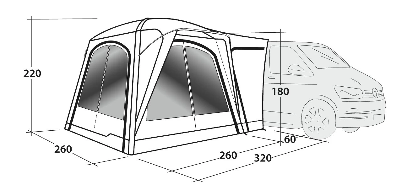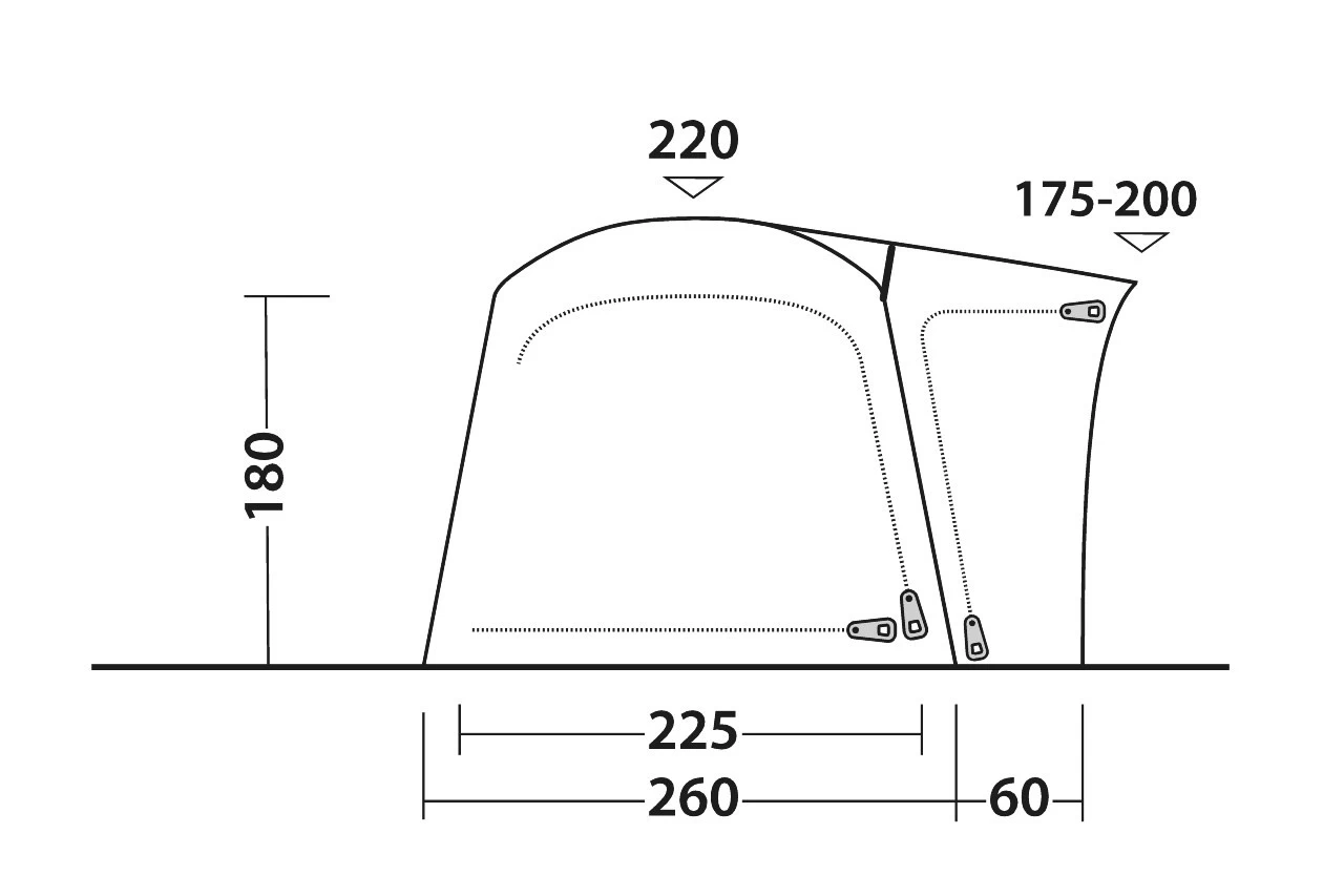 Das Outwell Bremburg Air Busvorzelt besticht vor allem durch seine One-go Inflation Technology, mit der du dein Zelt schnell und vor allem einfach aufbauen kannst. Es eignet sich besonders gut für Fahrzeuge mit einer Anschlusshöhe von 175-200 cm. Die vorgeformten Luftschläuche sorgen für besonders große Kopffreiheit und viel Platz im Inneren deines Zeltes. In das Zeltinnere gelangst du durch einen der drei Eingänge. Diese sind mit Moskitoeinsätzen ausgestattet und ermöglichen dir eine angenehme Belüftung, ohne dass Insekten in das Zelt kommen können. Bei Bedarf kannst du alle Seitenwände wegrollen und dein Zelt in einen luftigen Pavillon mit Überdachung verwandeln. Der geräumige Wohnbereich ist mit großen getönten Fenstern ausgestattet durch das Licht in dein Zelt gelangt und es wohnlicher macht. Möchtest du hingegen mehr Privatsphäre genießen, kannst du die Vorhänge schließen und hast zusätzlich ein schattiges Plätzchen zum Verweilen. Das integrierte HookTrack-System ermöglicht dir im Bremburg Air eine einfache Anbringung von Leuten und anderen Gegenstände bis zu 1,5 kg. Eine herausnehmbare Bodenplane verhindert Zugluft, Wassereintritt und krabbelnde Insekten in deinem Zelt. Ein zusätzliches, abgedunkeltes Innenzelt, welches du als Stauraum oder Schlafkabine nutzen kannst, ist optional erhältlich.