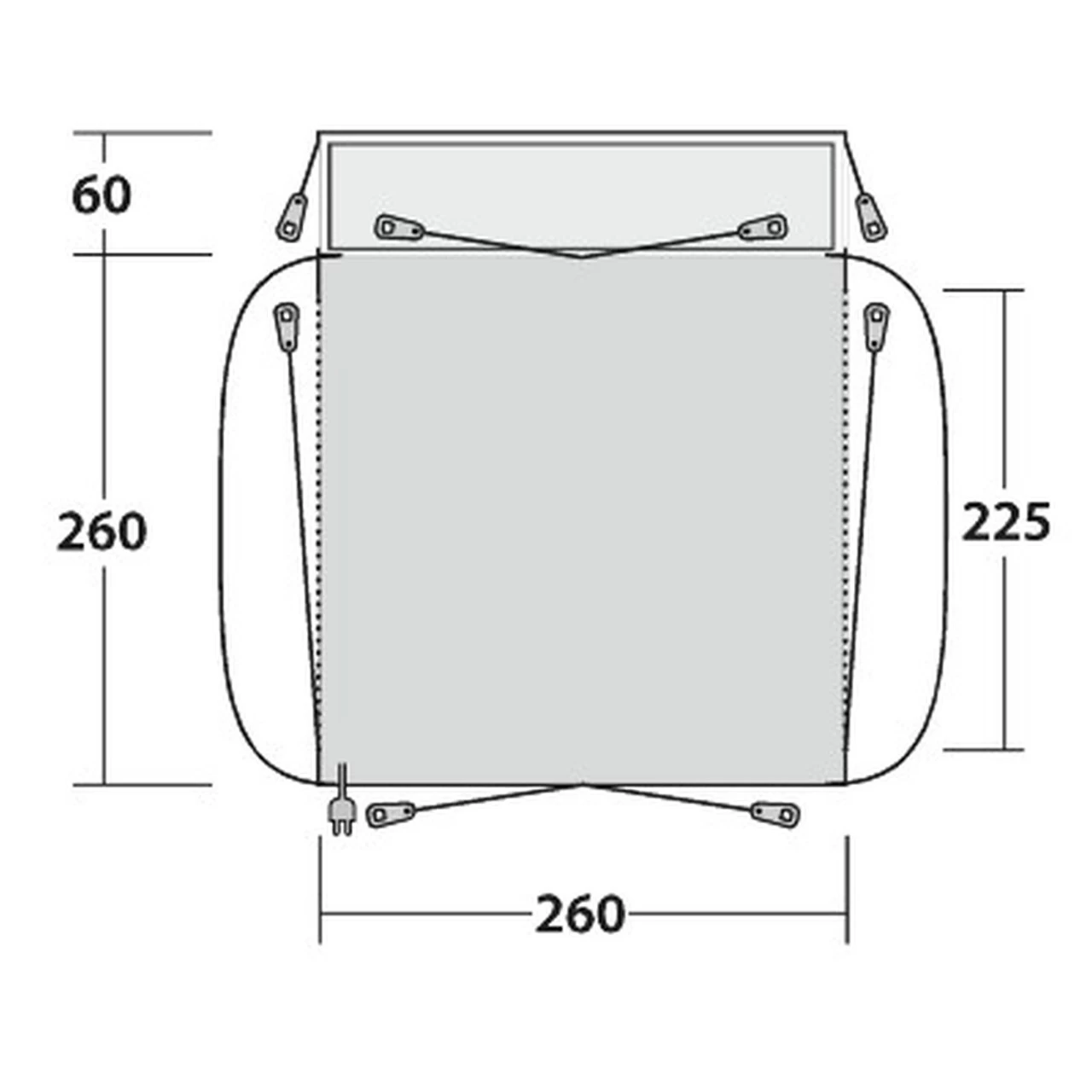 | Aufbau-/ Wohnfläche | 260 x 320 cm / 225 x 260 cm |