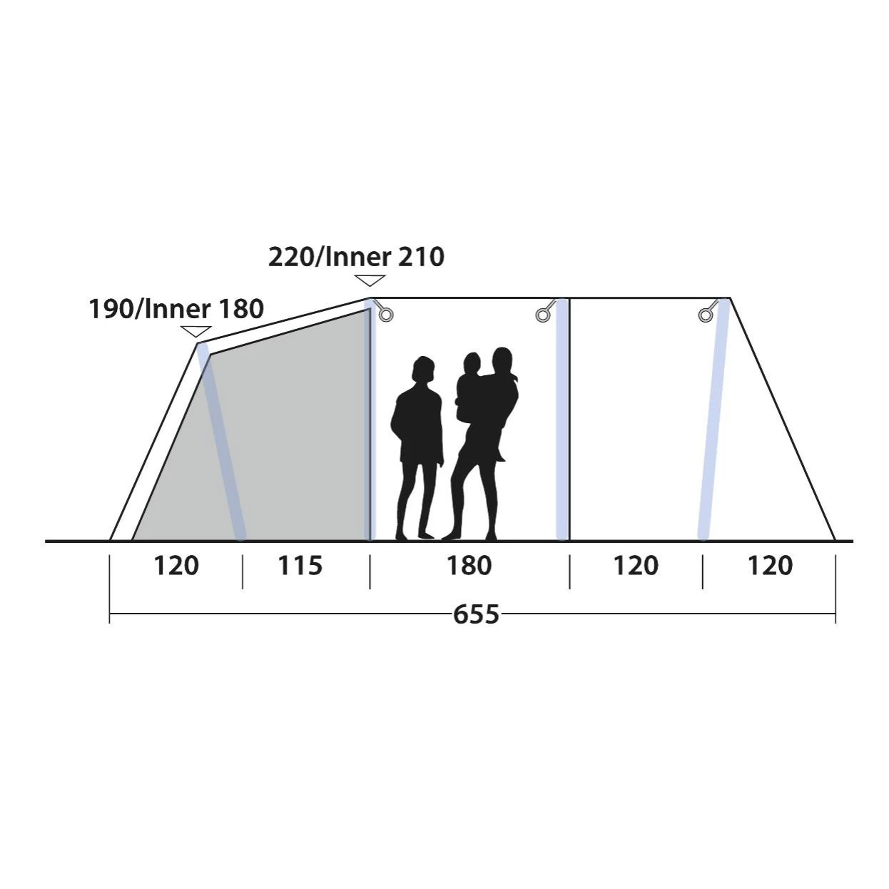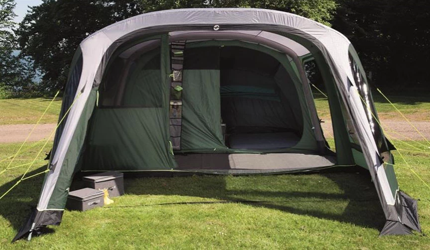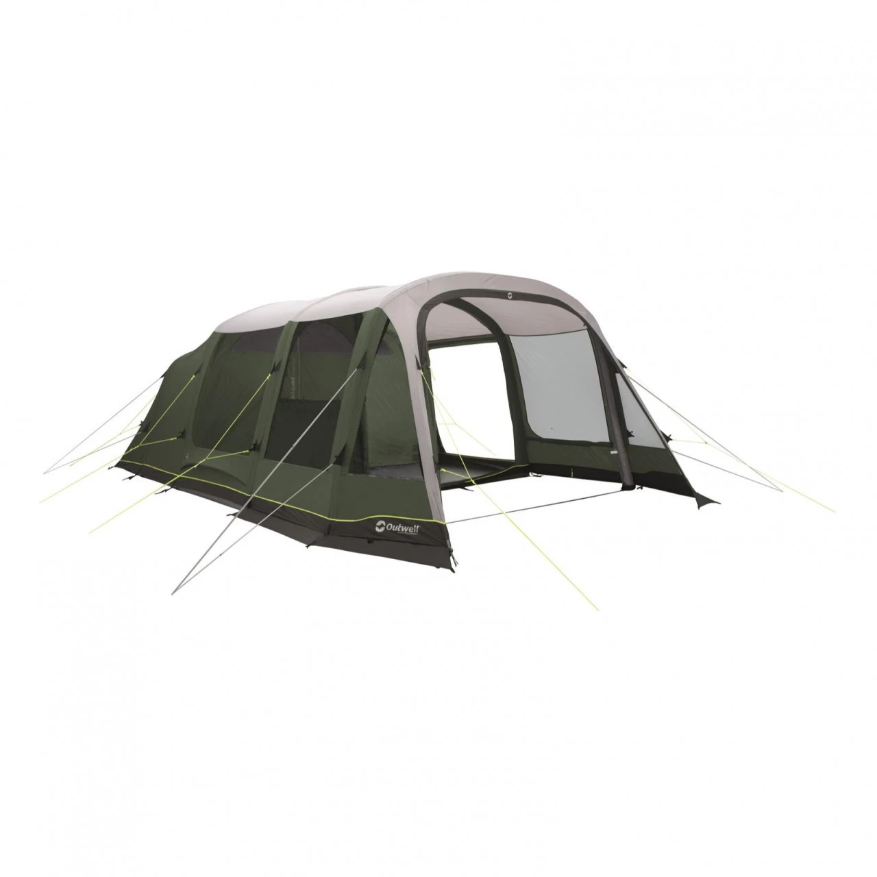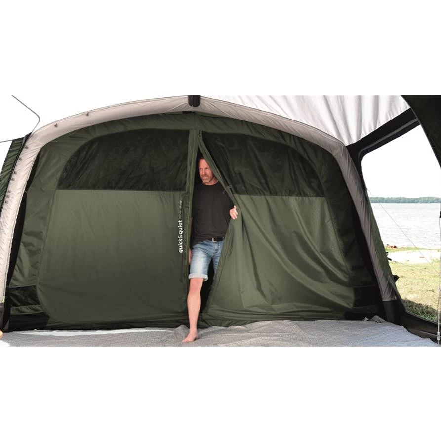 Mit dem großzügig geschnittenen Outwell Parkdale 6PA Familienzelt bist Du ideal für einen Urlaub mit Deinen Liebsten ausgestattet. Eine große Nasszelle, ein Wohnraum sowie ein Schlafraum bieten Platz zum Spielen, Kochen und Verweilen. Die verschließbare Nasszelle eignet sich hervorragend zum Kochen oder zum Abstellen Deiner nassen und schmutzigen Ausrüstung. Integrierte Moskitonetze halten lästige Insekten von dem Innenraum fern. Die seitliche Tür sowie die D-förmige Fronttür können komplett geöffnet werden. Dank der großen Fenster hast Du einen idealen Ausblick auf Deine Umgebung. Solltest Du etwas mehr Privatsphäre benötigen, kannst Du die Gardinen einfach verschließen. Damit Dein Zelt ein wenig wohnlicher wird, verfügt das Zelt über das HookTrackSystem. Dieses System bietet Dir vielseitige Möglichkeit Gegenstände oder Lampen aufzuhängen. Abgedunkeltes Deckenmaterial sorgt in dem Schlafbereich dafür, dass Deine Nächte länger werden. Musst Du die Schlafkabine nachts mal verlassen, hilft Dir die Quick&Quiet-Tür dabei Deine Begleiter nicht aufzuwecken. Die Tür wurde mit einem Magnetband ausgestattet, welches ein fast geräuschloses Verlassen der Schlafkabine ermöglicht. Möchtest Du die Tür komplett verschließen, ist das auch kein Problem – ein Reißverschluss ist ebenfalls vorhanden. Neben den Schlafkabinen ist auch die Fronttür mit dem Quick and Quiet Magnetverschluss ausgestattet. Die drei Schlafkabinen des Parkdale 6PA Familienzeltes können individuell in zwei oder in eine große Schlafkabine umgewandelt werden.