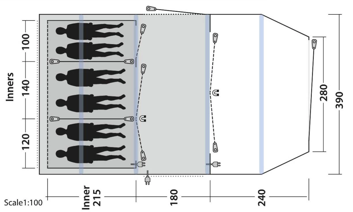 - Abgedunkelte Schlafkabinen im inneren des Zeltes