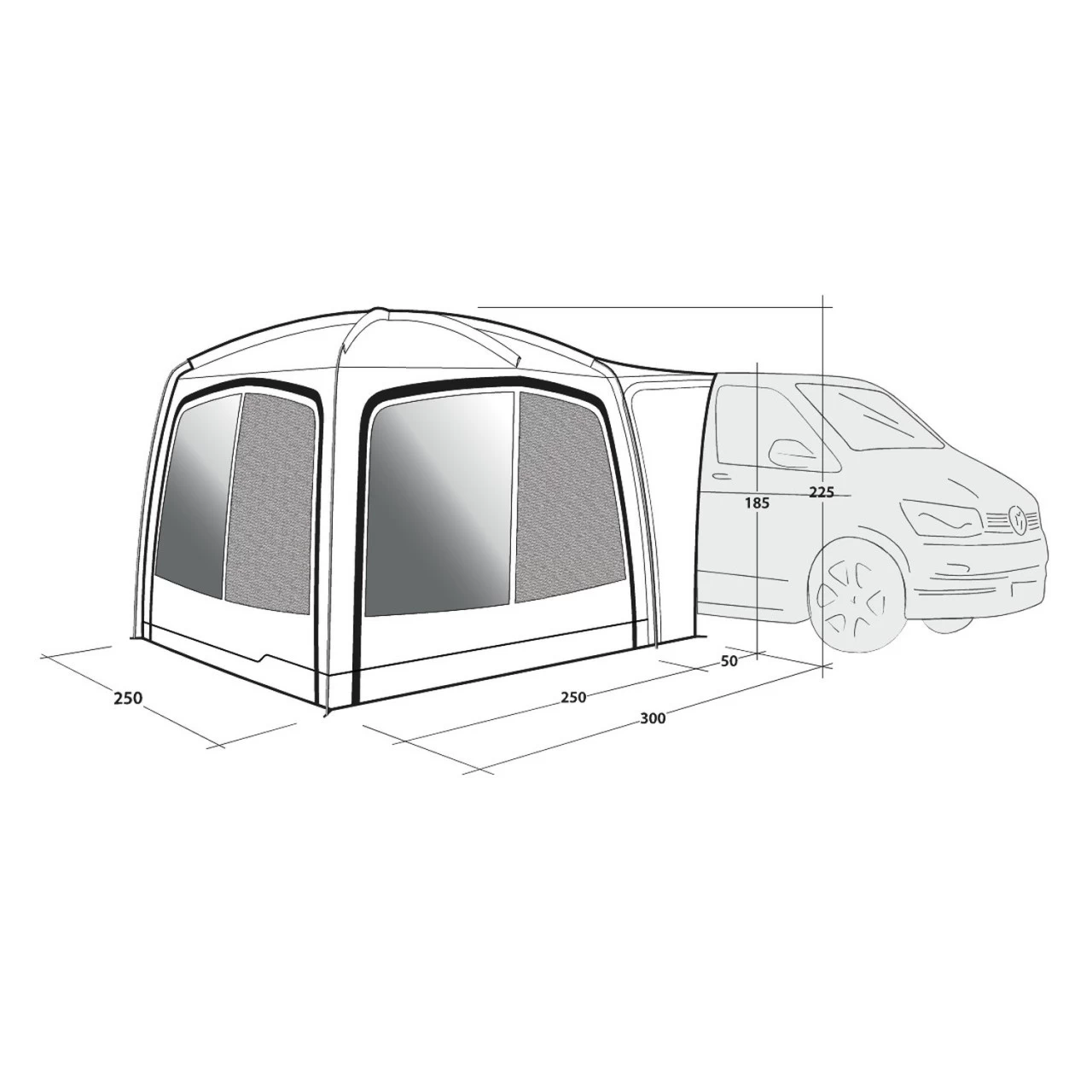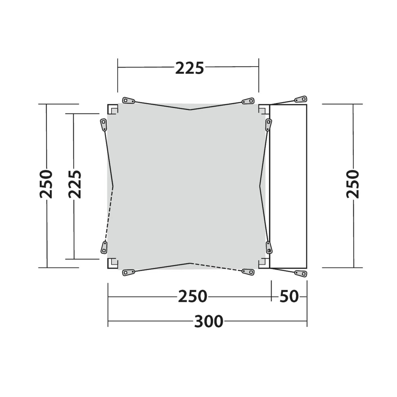 | Aufbau-/ Wohnfläche | 300 x 250 cm / 250 x 225 cm |