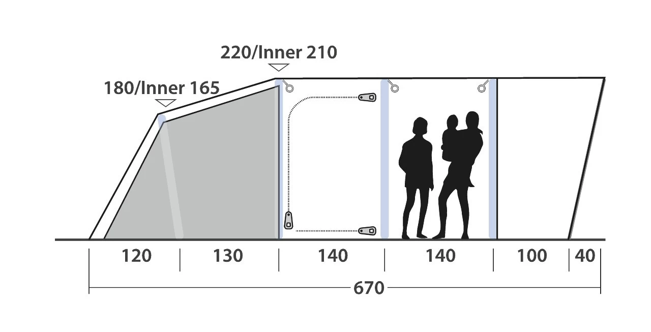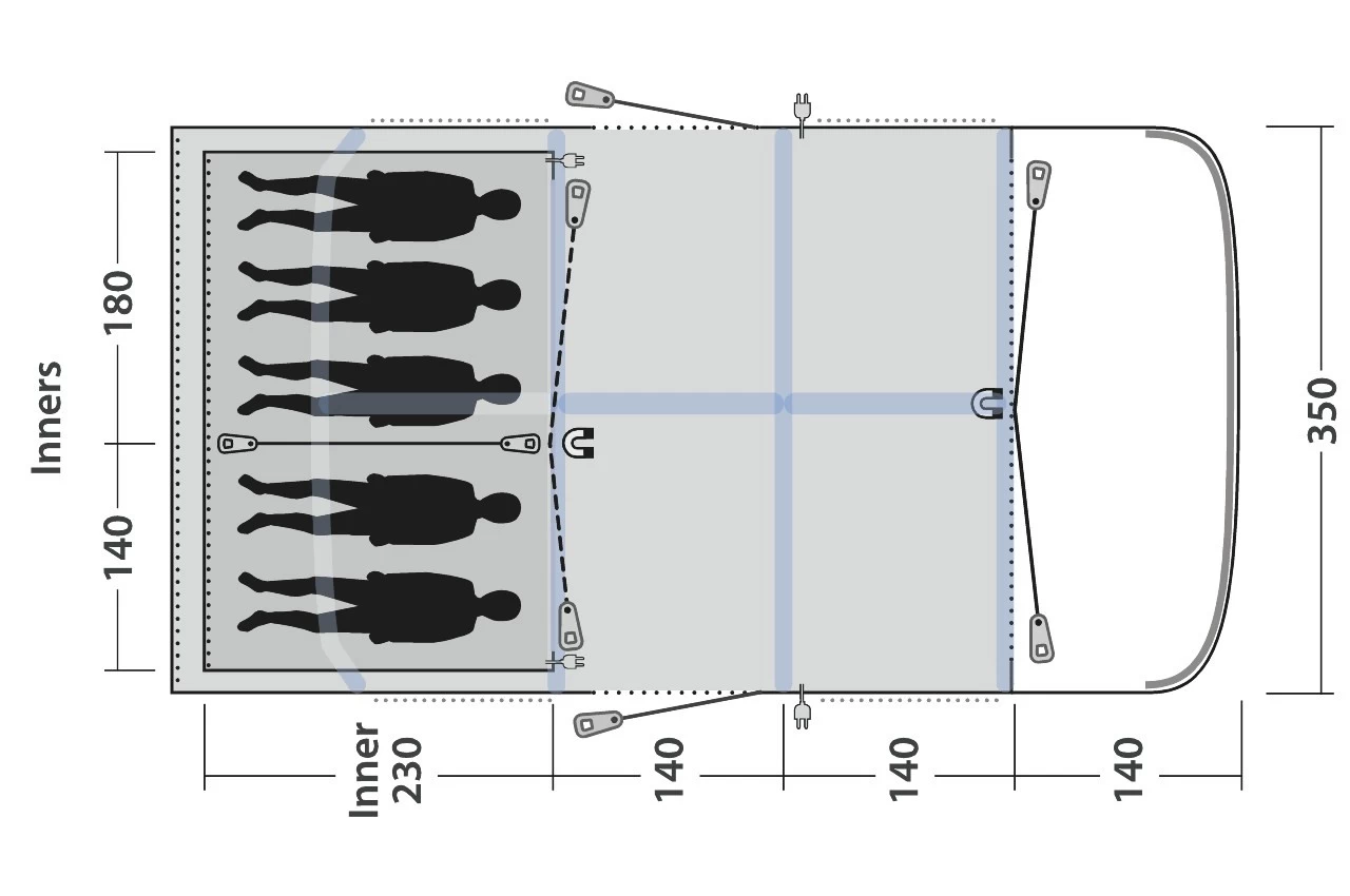 - Außenzelt und Innenzelt verfügen über Kabeleinführungen