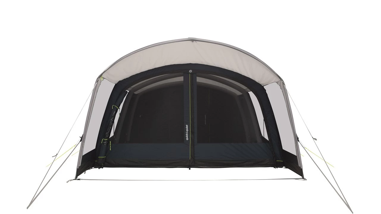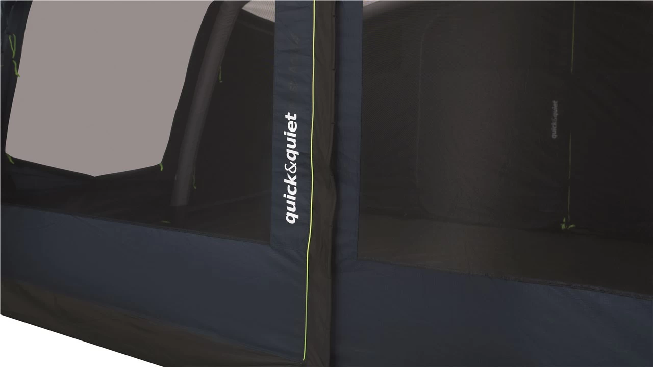 Das Outwell Springville 5SA Familienzelt ist ein Zweiraumzelt mit zwei abgedunkelten Schlafkabinen und eignet sich ideal für einen Trip mit bis zu 5 Personen. Es lässt sich durch das Power Air System schnell und einfach aufbauen. Das Power Air System bietet eine langlebige individuelle Luftschlauchtechnologie mit vorgeformten Schläuchen im gotischen Stil, die über leicht zugängliche externe Ventile außerhalb des Zeltes aufgepumpt oder entleert werden können. Die Luftschläuche im gotischen Stil bieten große Kopffreiheit und viel Platz im Innenraum. In das Innere des Springville 5SA gelangst du durch einen der drei mit einem Moskitonetz ausgestatteten Eingänge. Die Fronttür des Zeltes wurde mit dem Quick & Quiet Magnetverschluss ausgestattet und gewährt dir einen geräuschlosen Zutritt ins Zelt. Das Zelt besitzt große, getönte Fenster, die viel Licht ins Innere lassen. Für mehr Privatsphäre und Schatten können diese einfach mit den Vorhängen abgedunkelt werden. Eine völlig wasserdichte und eingenähte Bodenplane verhindern, dass Nässe und Insekten hineinfinden. Das integrierte HookTrack-System ermöglicht dir eine vielseitige Positionierung von Lampen und Gegenständen bis zu 1,5 kg. Möchtest du im Zelt ein wenig Ordnung halten, helfen dir Netztaschen im Innenzelt. Dort kannst du kleine Gegenstände sicher und griffbereit aufbewahren. Für eine angenehme Belüftung im Zelt sorgen das Low Ventilation System und das Rear Ventilation System. Diese regulieren den Luftstrom von geschlossenem bis vollständig geöffneten Reißverschluss.