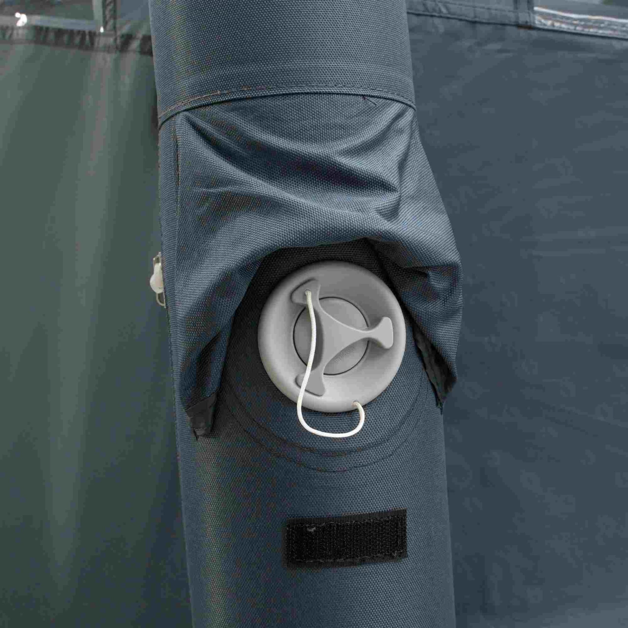 | Lieferumfang | Abspannleinen, Tragetasche, Luftpumpe, Heringe, eingenähte Bodenplane |
