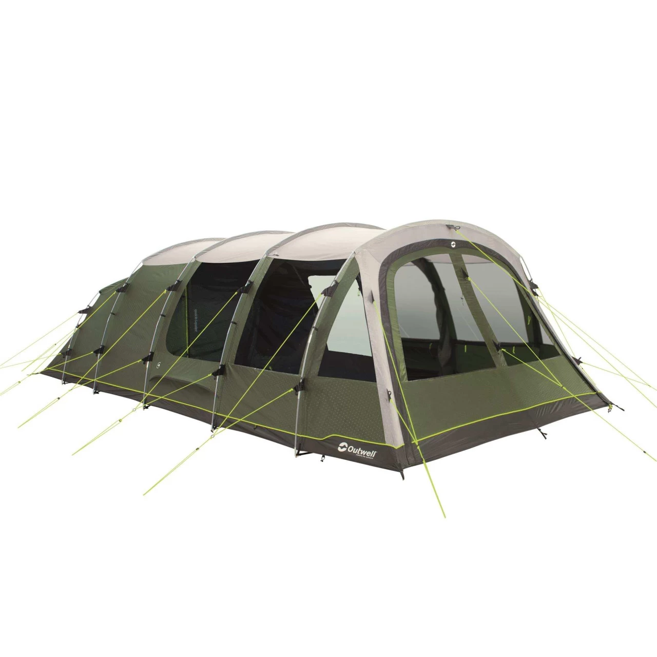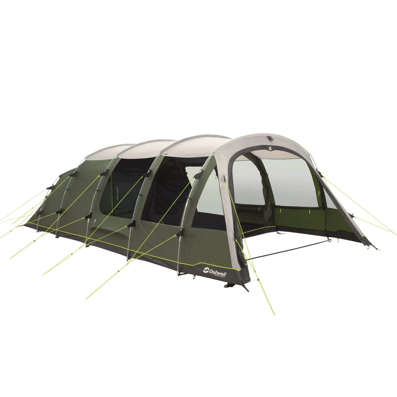 Wenn du für deinen Familienurlaub ein Zelt mit einem sehr großen Platzangebot suchst, bist du bei dem Outwell Winwood 8 Familienzelt genau richtig. Es bietet Platz für bis zu 8 Personen. Das Zelt ist in 3 Zonen aufgeteilt: den Wohnbereich, den sogenannten Nassbereich und den Schlafbereich. Der Eingangsbereich des Zeltes hat keine eingenähte Bodenwanne und wird daher auch Nassbereich genannt, denn hier kannst du bei schlechtem Wetter nasse Ausrüstung geschützt lagern, ohne das Zelt dreckig oder nass zu machen. Die optional erhältliche Bodenschutzplane ist so lang, dass der Eingangsbereich mit ausgelegt wird und du dir so deinen Wohnbereich vergrößern kannst. Im Lieferumfang ist für den Nassbereich auch eine extra Innenzelt enthalten, welches entweder als zusätzliche Schlafkabine für 2 Personen oder als Stauraum genutzt werden kann.