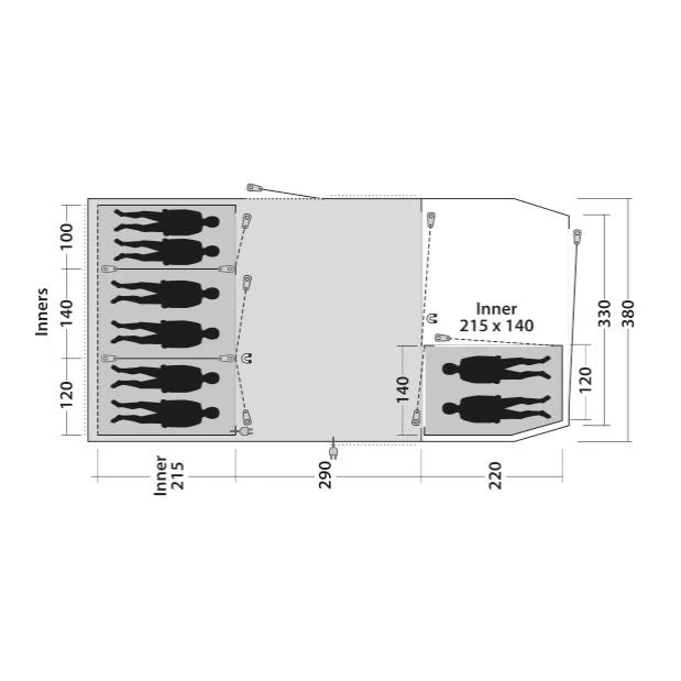 Wichtig für einen angenehmen Urlaub im Zelt ist die Belüftung. Das Winwood 8 bietet hier ideale Lösungen. Neben dem Low Ventilation System im Wohnraum gibt es an der Zeltrückseite noch das Rear Ventilation System. Das spezielle Belüftungsdesign lässt eine individuelle Einstellung des Luftzuflusses zu, so dass du für alle Wettersituationen die perfekte Belüftung hast. Die oberen Bereiche der Innentüren sind mit Moskitonetz ausgestattet und können zur optimalen Belüftung auch geöffnet werden.