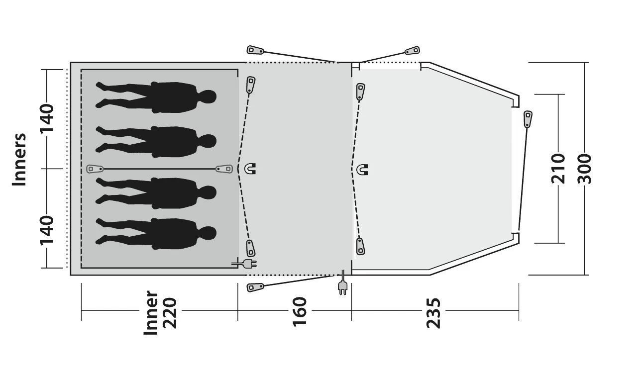 - Außenzelt und Innenzelt verfügen über Kabeleinführungen