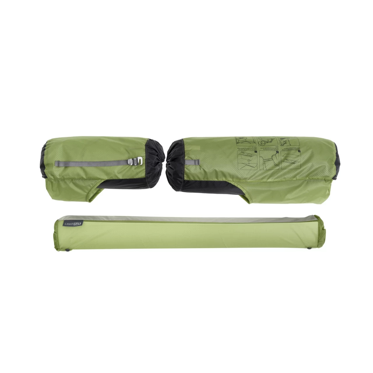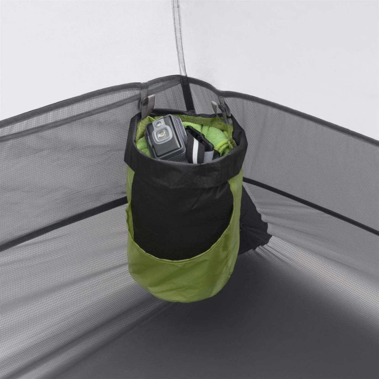 Bei dem Fair-Share Storage handelt es sich um drei unterschiedliche Packsäcke, in die du das Zelt verpacken kannst. So teilst du das Gewicht auf. Die Packsäcke können sowohl verbunden als auch einzeln verstaut werden. Wenn das Zelt aufgebaut ist, kannst du zwei Packsäcke als Tasche für deine Ausrüstung im Zelt befestigen. Der Stangenpacksack verwandelt sich in eine Lightbar. Einfach eine oder zwei Stirnlampen einlegen und durch den durchsichtigen Diffusor wird das Zelt von oben beleuchtet.
