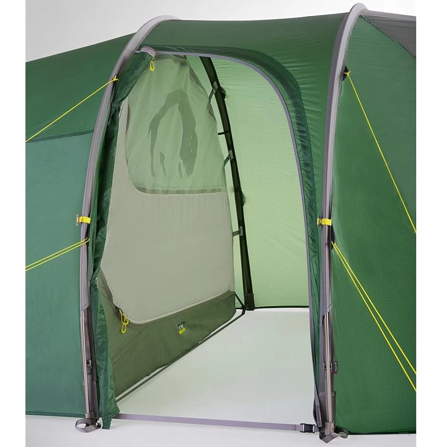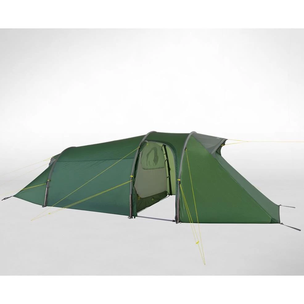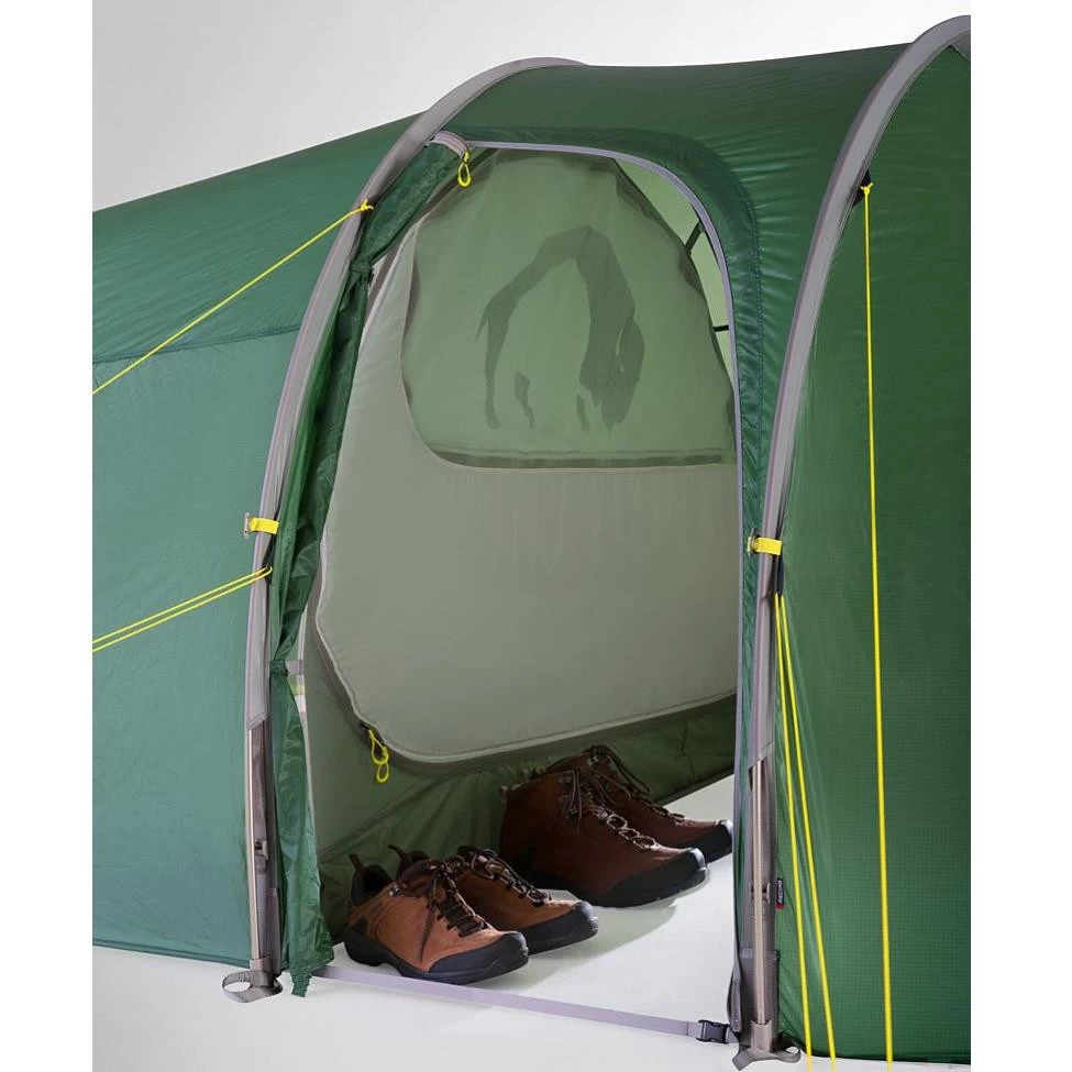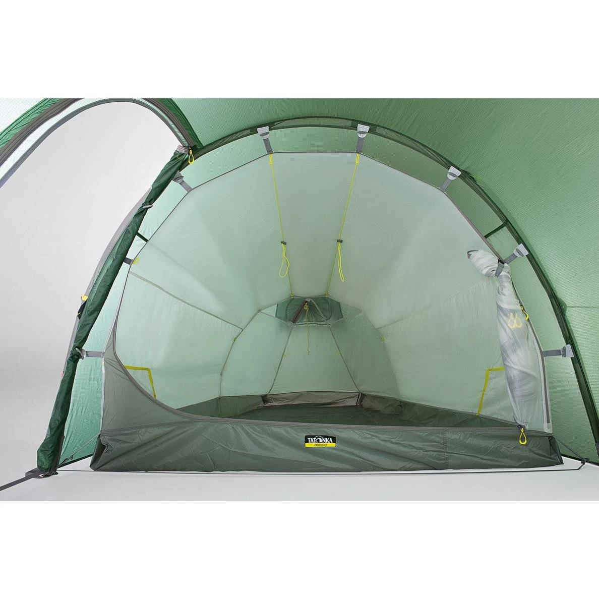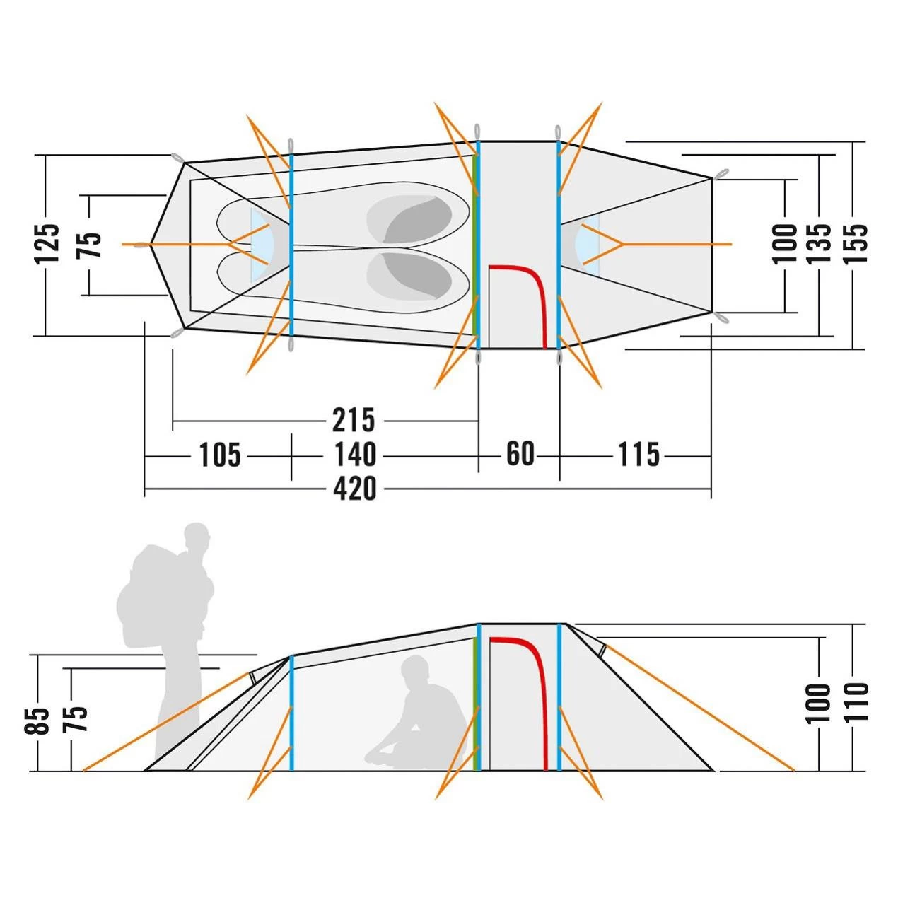 Das Okisba Tunnelzelt ist ein zwei Personenzelt von Tatonka und die ideale Wahl für Touren mit viel Gepäck, wo dennoch Gewicht gespart werden soll.In der großen Apside mit Seiteneingang des Okisba Tunnelzelt kann bei schlechtem Wetter gekocht werden. Der Zeltboden ist aus PU-beschichtetem Nylon und schützt somit perfekt vor Bodennässe. Durch eine Koppelung von Außen- und Innenzelt ist ein rascher Aufbau selbst bei widrigem Wetter garantiert. An der Wäscheleine im Inneren lässt sich auch bei Regen problemlos Wäsche trocknen und durch den Lüfter im Innenzelt wird stets für Frischluft gesorgt.