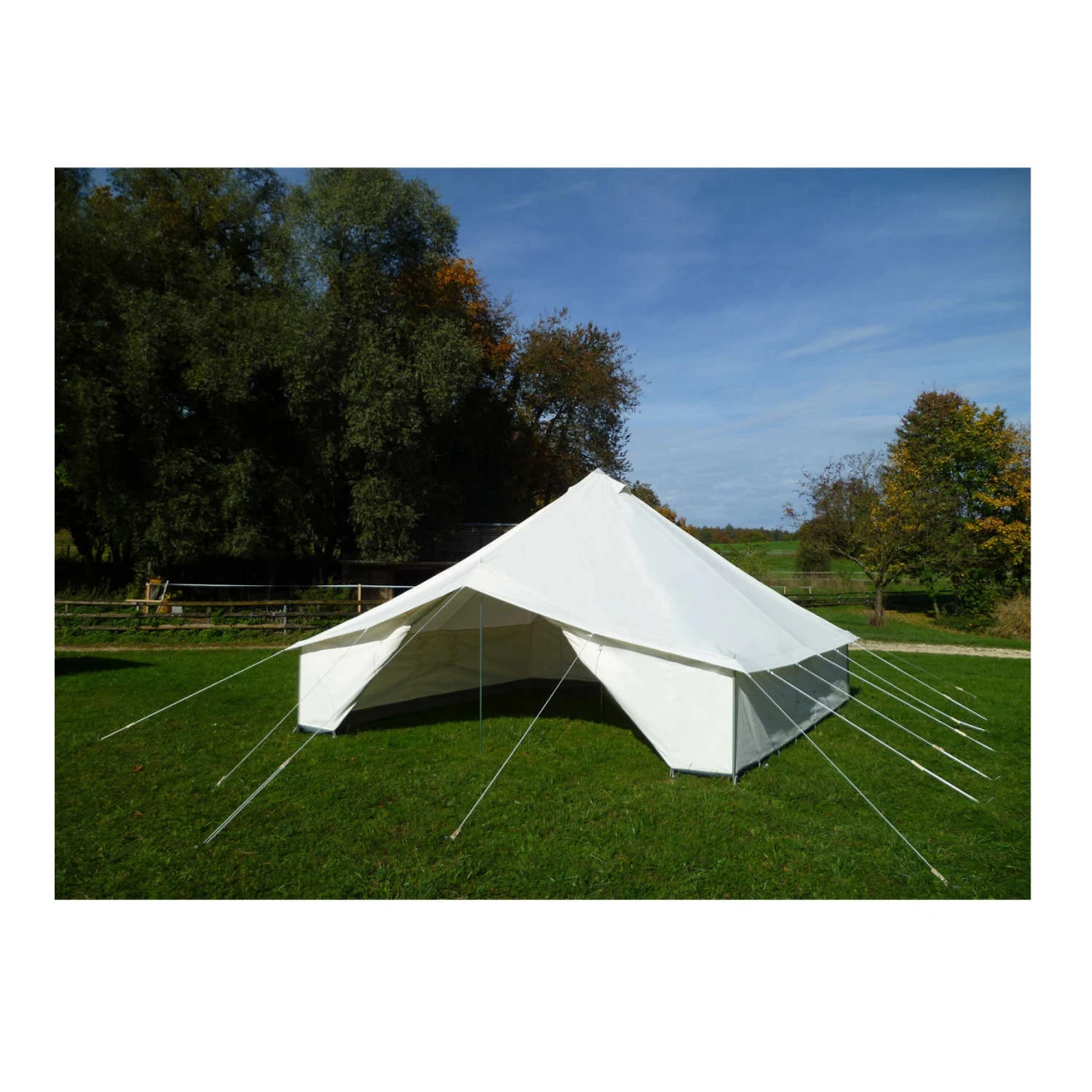 Das Tortuga Nevada Pyramidenzelt ist für zwölf Personen ein komfortables Gruppenzelt. Das Baumwoll-Polyester Gewebe eignet sich zu den klassischen drei Jahreszeiten, da es wasserabweisend, atmungsaktiv und reißfest ist. Außerdem lässt es sich sehr gut abspannen, weshalb sich kein Wasser auf der Zelthaut anstaut. Die beiden Lüftungshauben im Dach und die Moskitotüllfenster sorgen für eine angenehme Ventilation im Zeltinneren. Falls Ihr in der sengenden Mittagssonne im Zelt verweilen wollt, könnt ihr die beiden Eingänge komplett aufrollen, um ein schattiges Plätzchen zu genießen. Das Tortuga Nevada Pyramidenzelt ist deshalb ein beliebter Begleiter den Campingurlaub.