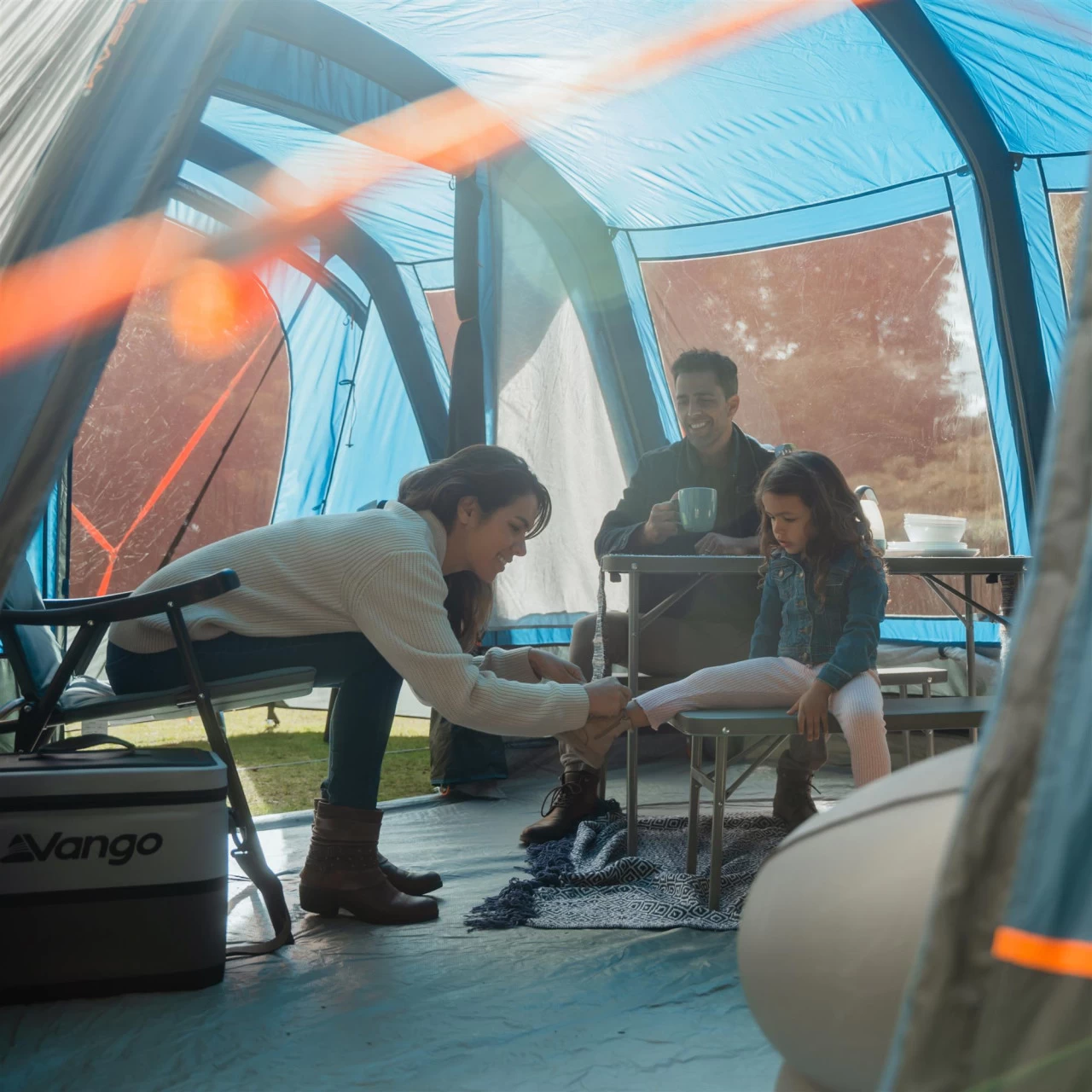 Als 3-Zonen-Zelt ist das Vango Joro Air 600XL Sentinel Eco Dura in ein überdachten Vorraum, einen Wohnraum und eine Schlafkabine unterteilt. Bei schönem Wetter dient der überdachte Eingangsbereich als Sonnen- und Windschutz und kann als Kochbereich genutzt werden. Wird dieser Bereich komplett geschlossen, so erweiterst du deinen Wohnraum, denn du kannst den Wohnbereich auch durch einen separaten Seiteneingang betreten.