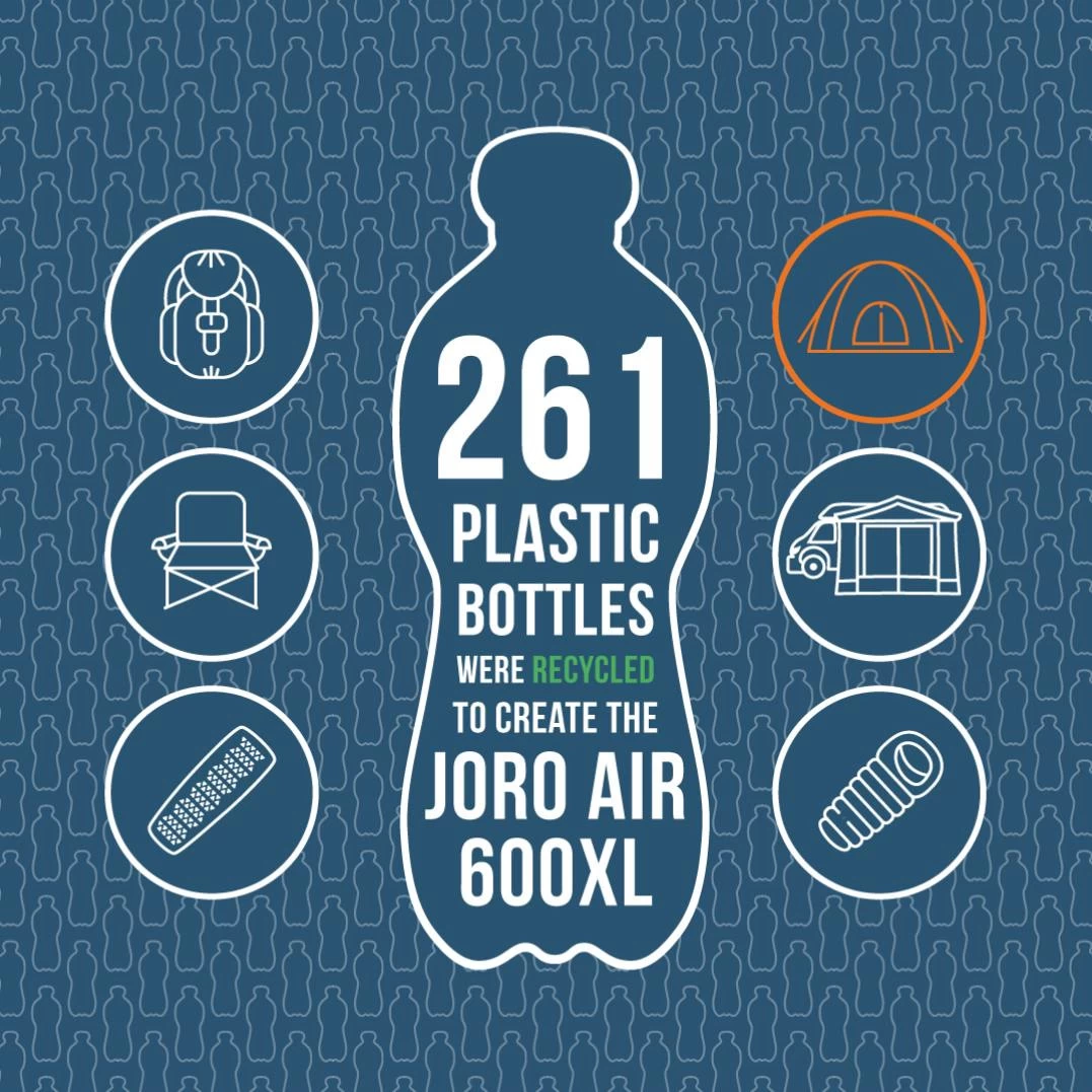 Wer seinen Urlaub gern in der Natur verbringt, wird darauf achten, dass die Natur nicht durch Plastikmüll verunreinigt wird, entscheidet sich mit dem Vango Joro Air 600XL Sentinel Eco Dura Package richtig. Aus 261 recycelten Einweg-Plastikflaschen wird das Sentinel Eco Dura-Gewebe hergestellt. Dank dem AirBeam S.I Pro System geht der Aufbau ganz einfach und schnell von statten. Einfach das Zelt auslegen und an den Ecken befestigen, die Pumpe an das Ventil anschließen und aufpumpen. Schon steht das Vango Joro Air 600XL Sentinel Eco Dura.