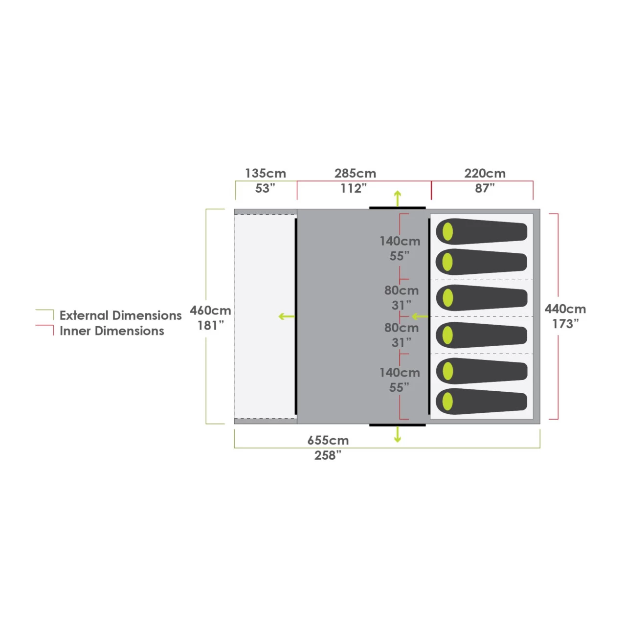 - Privater und geschützter Raum im vorderen Teil des Zeltes