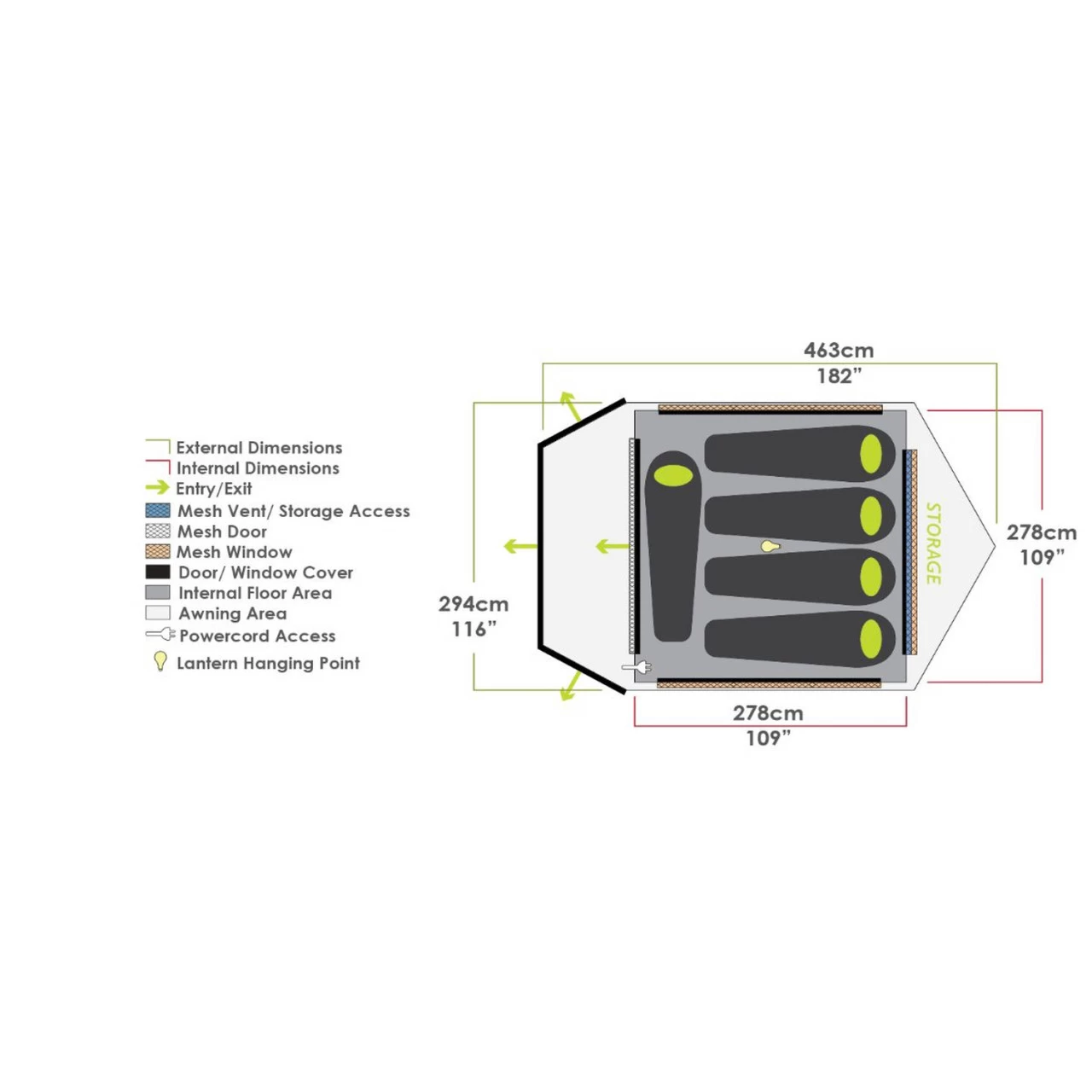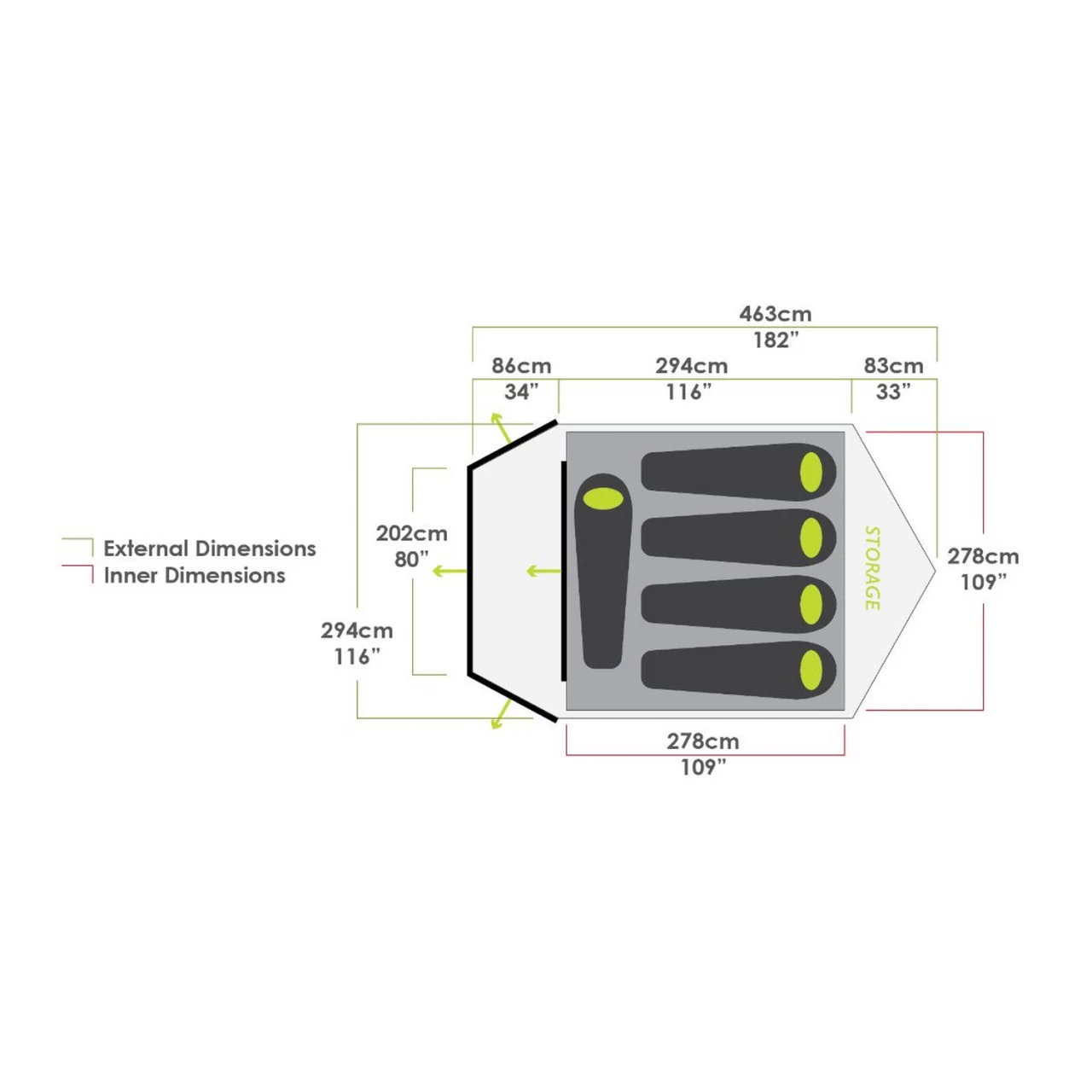 - Zusätzlichen Stauraum im hinteren Teil des Zeltes