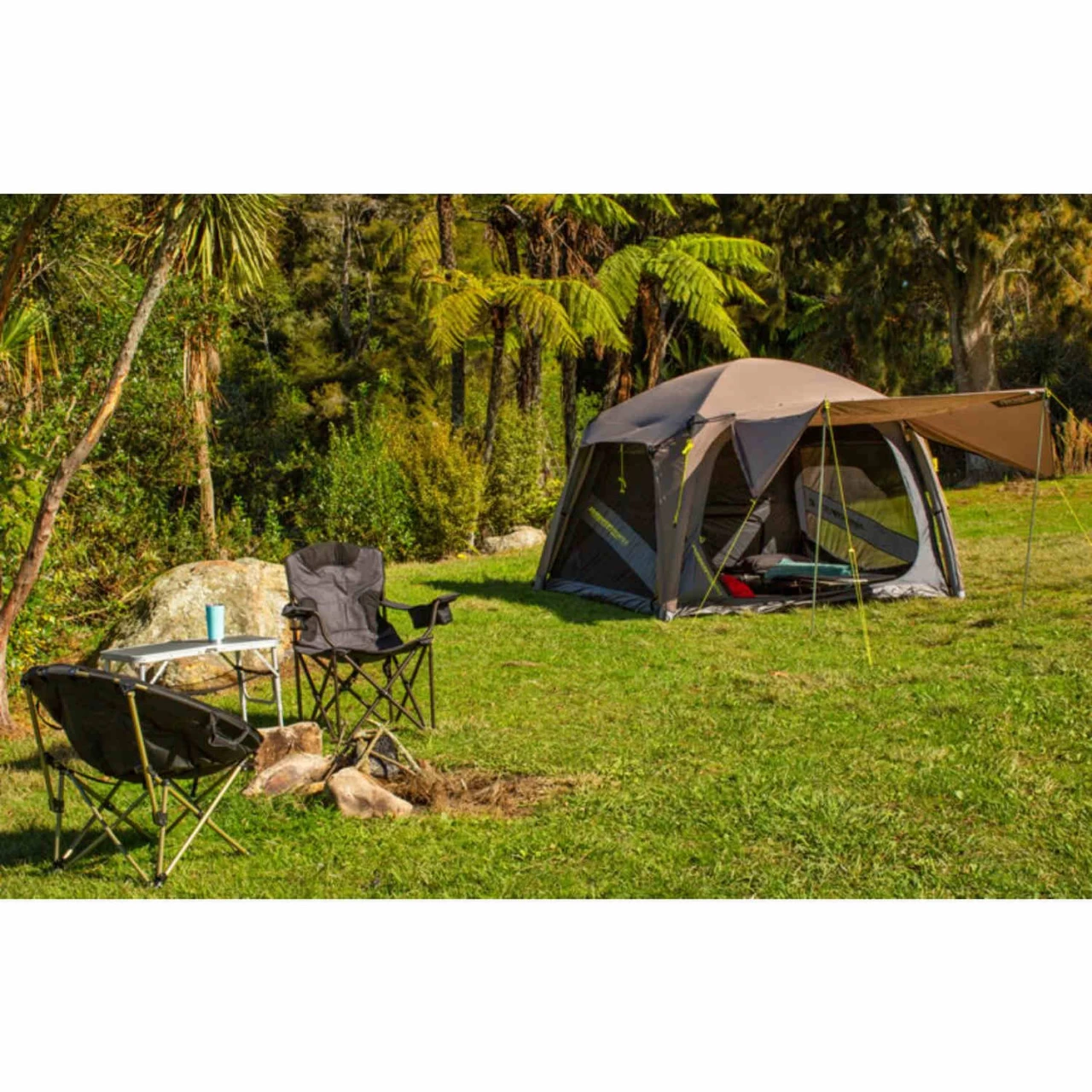 Das Zempire Pronto 5 V2 Familienzelt ist der Inbegriff von Mobilität und Benutzerfreundlichkeit. Dank des aufblasbaren Gestänges lässt sich das Zelt in wenigen Minuten aufbauen, und die mitgelieferten Stirnstangen maximieren das Innenvolumen. Das Innendach besteht vollständig aus Mesh, wodurch die warme Luft entweichen kann und die Kondensation minimiert wird. Wenn das Wetter es zulässt, können Sie das Außenzelt abnehmen, die seitlichen Innenfenster mit einem Reißverschluss verschließen und den Blick auf die Sterne genießen. Das Zempire Pronto 5 Familienzelt verfügt über Innenliegenden Fensterabdeckungen, die dir das Öffnen und Schließen der Fenster im Inneren des Zeltes ermöglichen. Das ultimative Belüftungssystem, das in wärmeren Klimazonen für maximale Belüftung sorgt. Die regensicheren Seitenwände verhindern an nassen Tagen windgetriebenen Regen, lassen aber dennoch die warme Luft entweichen und verhindern so Kondensation und unangenehme Feuchtigkeit.